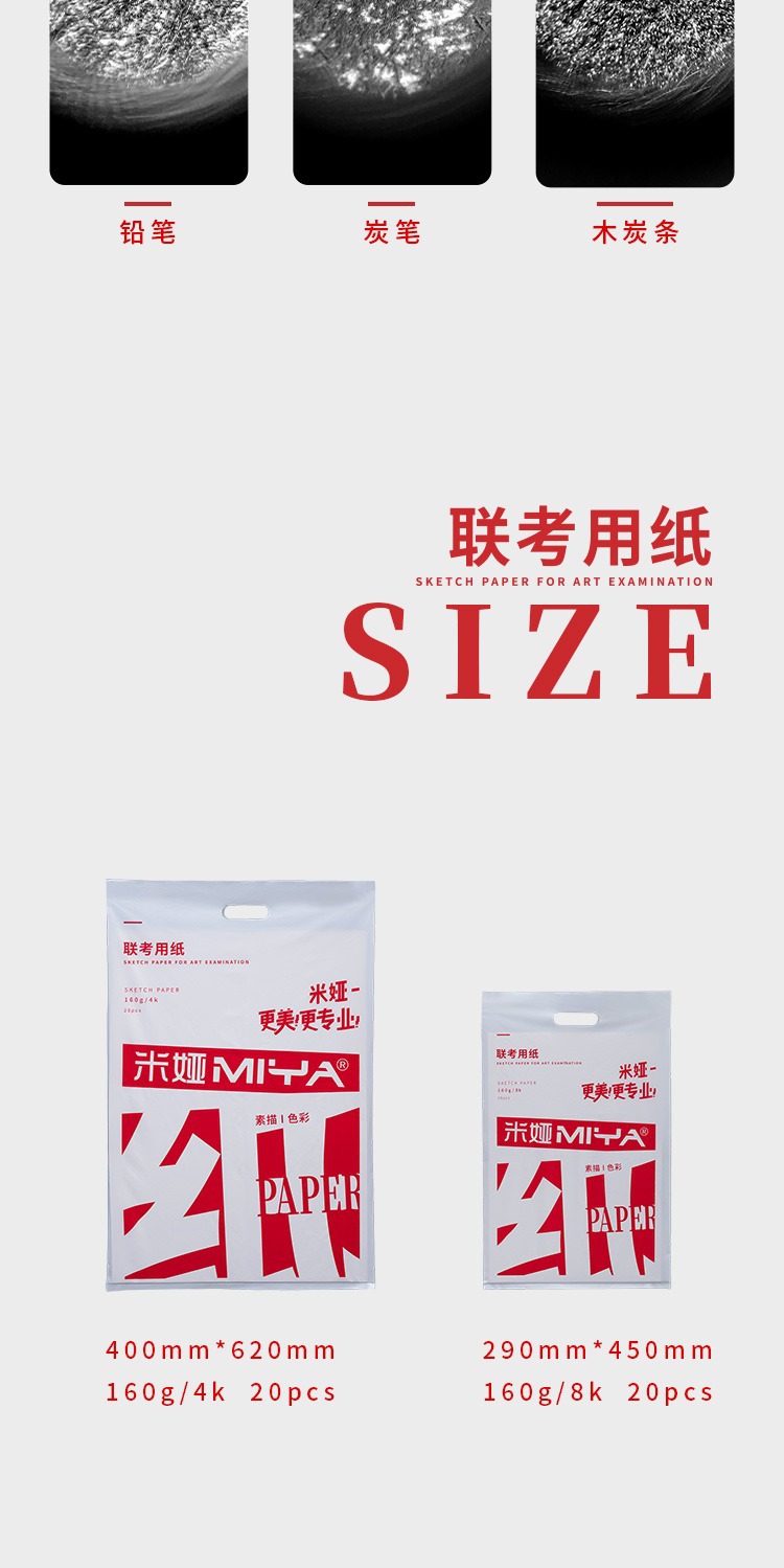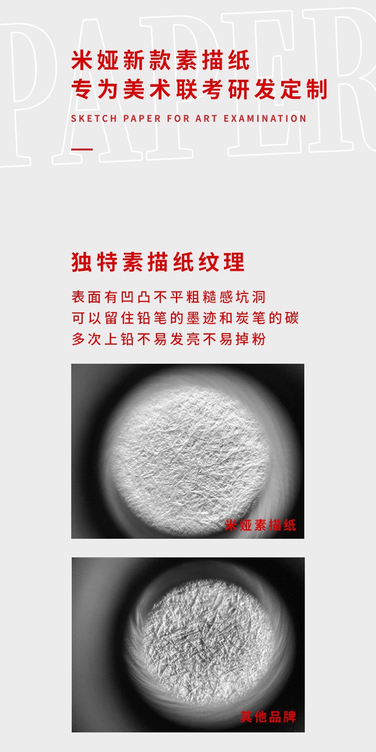 ミアスケッチ紙4k 8k合同試験専用mシリーズ厚さ180g 160g専門美術生スケッチ鉛筆画紙
