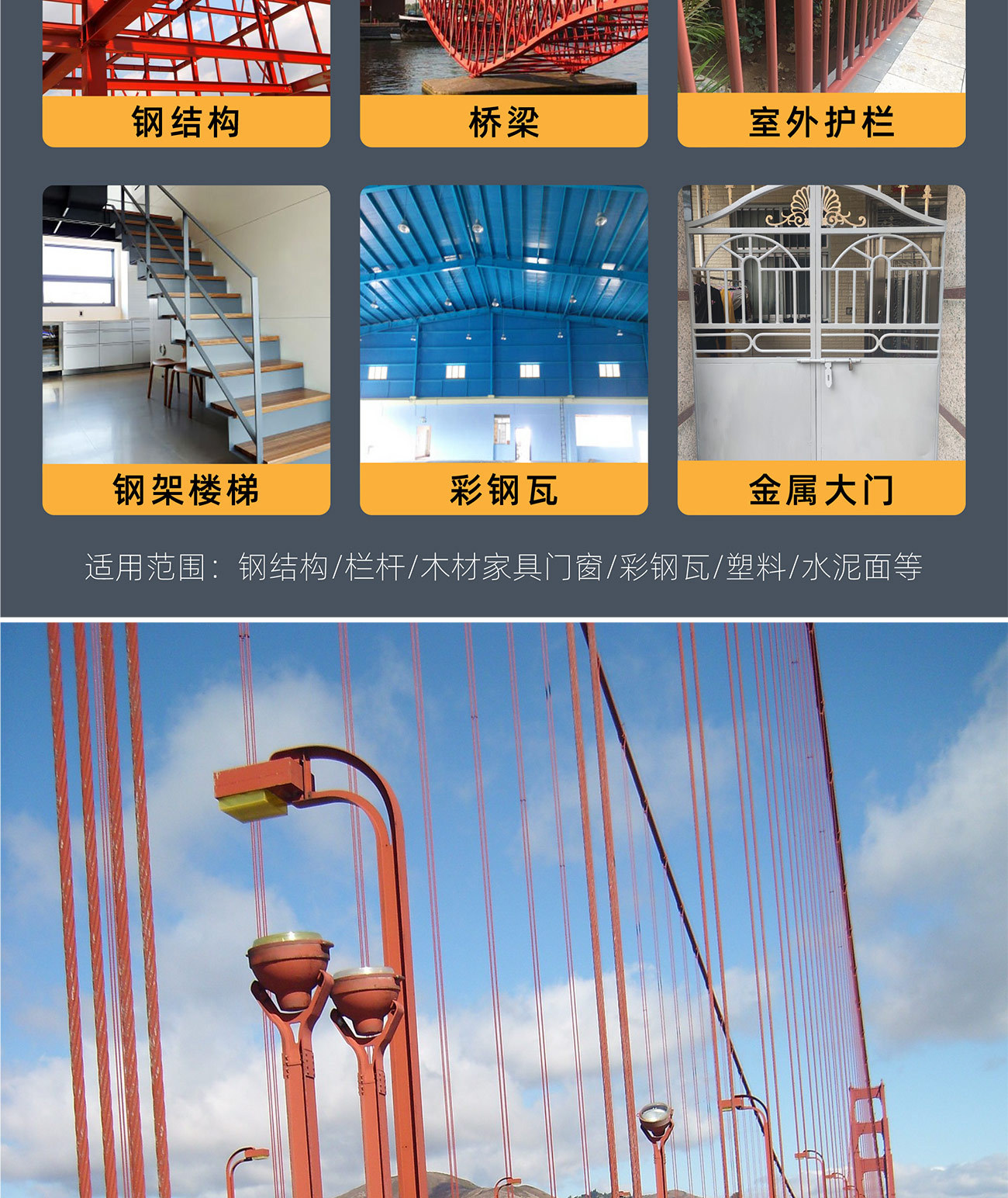 用途範囲 鉄骨構造、機械設備などの金属材料