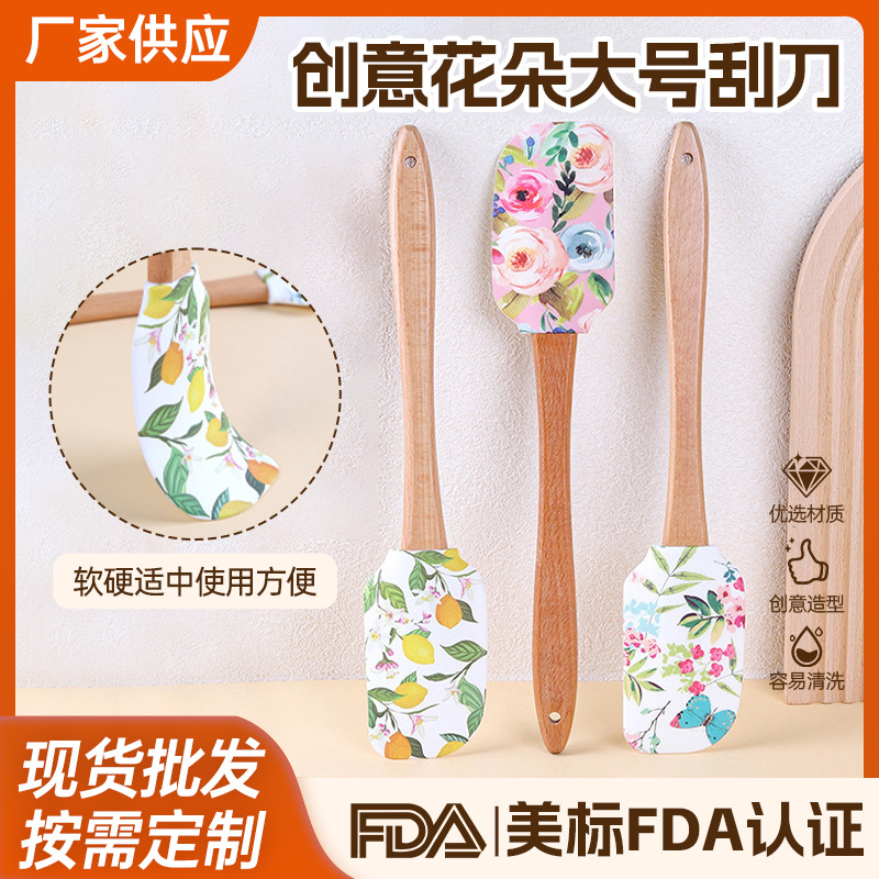 家庭用シリカゲルスクレーパー焙煎クリームヘラキッチンクリームケーキスクレーパー家庭用ケヤキ柄ヘラ卸売り