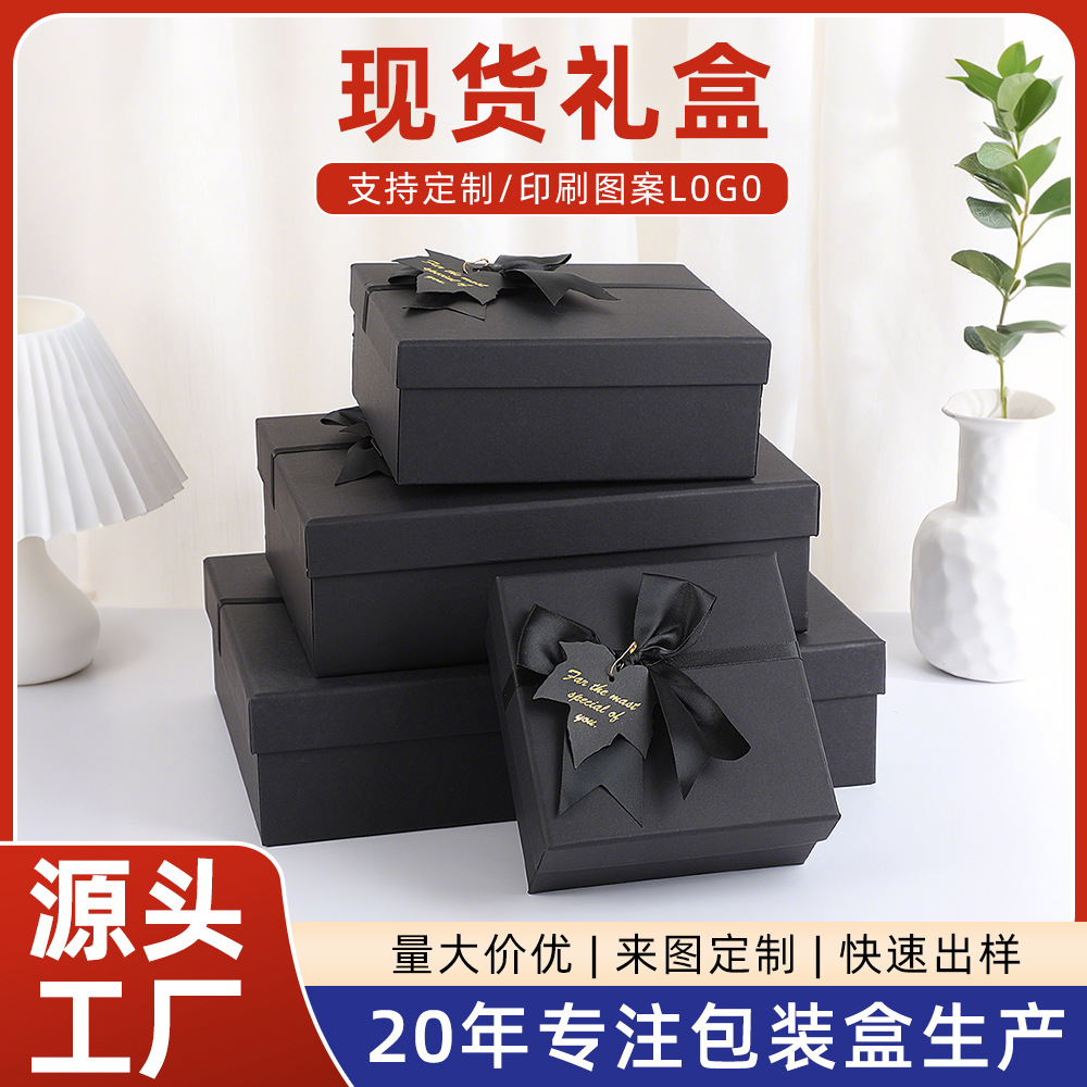 现货天地盖圣诞礼物盒黑色蝴蝶结礼品盒口红饰品包装盒生日礼物盒