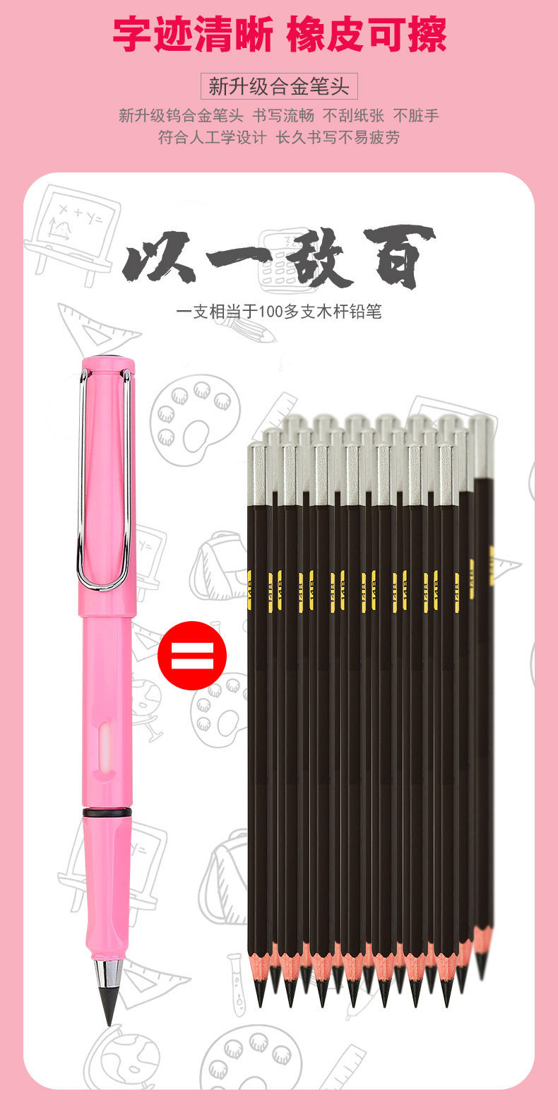 黑科技铅笔永恒无墨无铅毒不脏手写不完免削学生可擦写字儿童正品