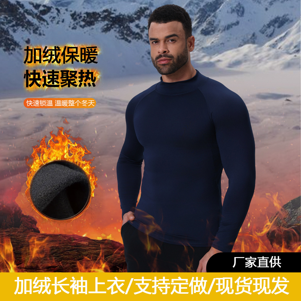 户外跑步训练服打底保暖内衣男加绒加厚紧身速干运动衣长袖健身服
