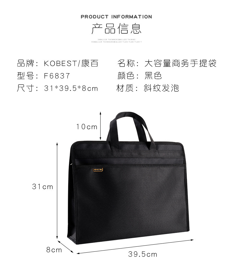 KOBEST康百6837手提げ書類袋オフィスファスナー袋大容量収納袋手提げブリーフケース