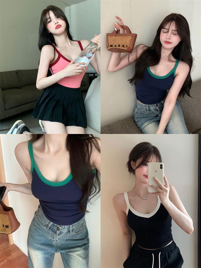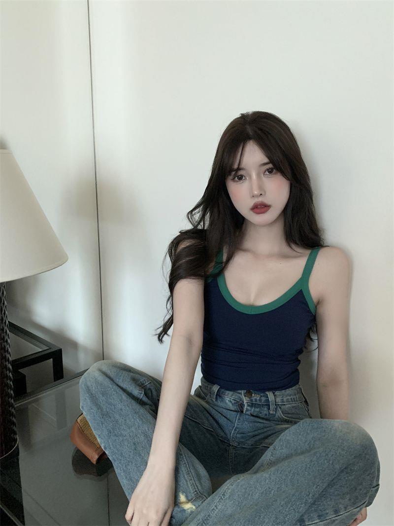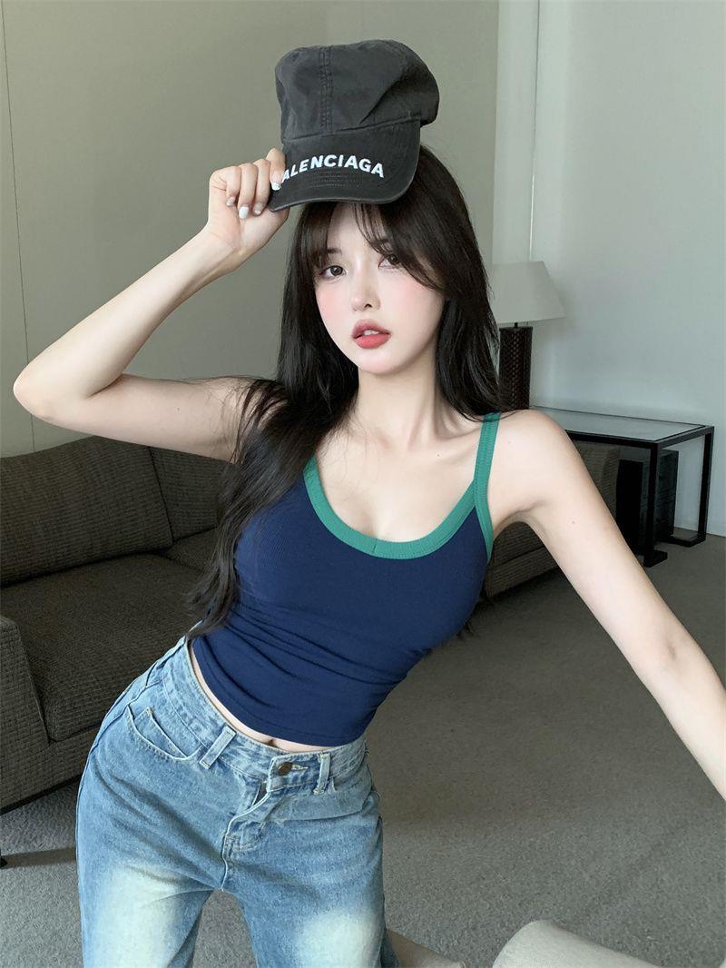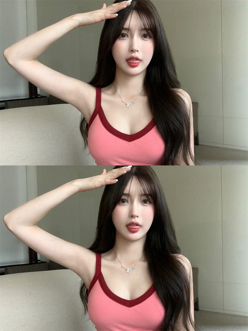 胸パッド付きキャミソール女性2025新夏韓国系純色ギャルセクシーで痩せている上着