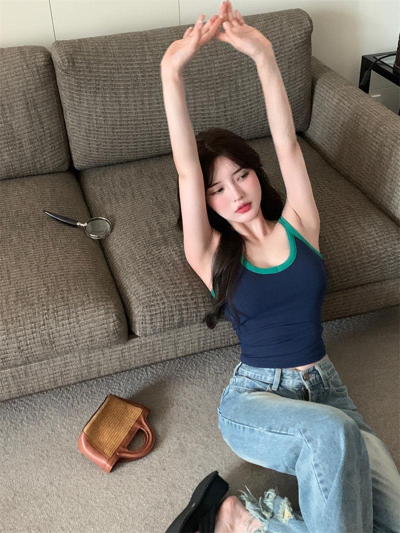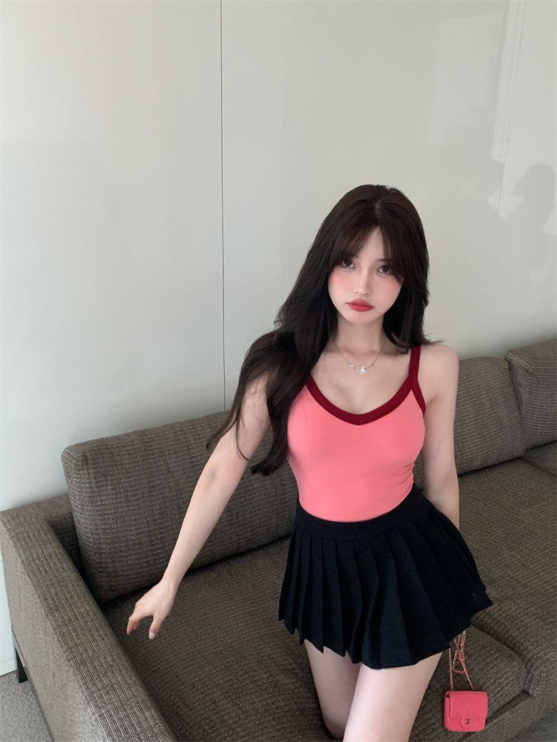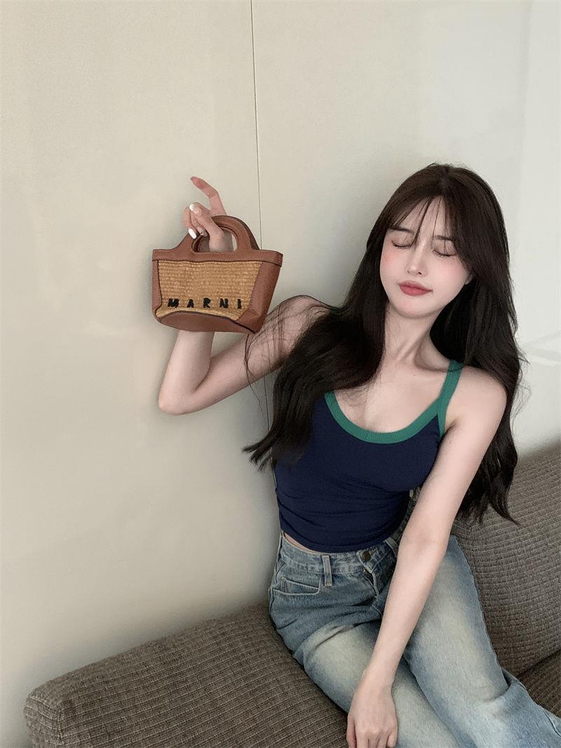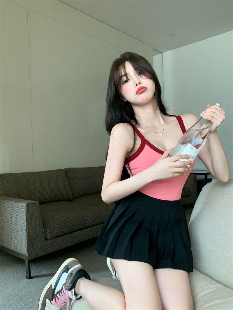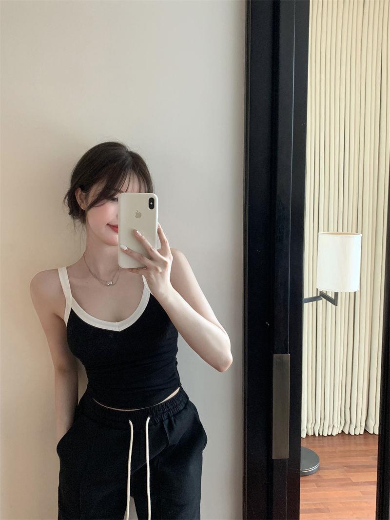 胸パッド付きキャミソール女性2025新夏韓国系純色ギャルセクシーで痩せている上着