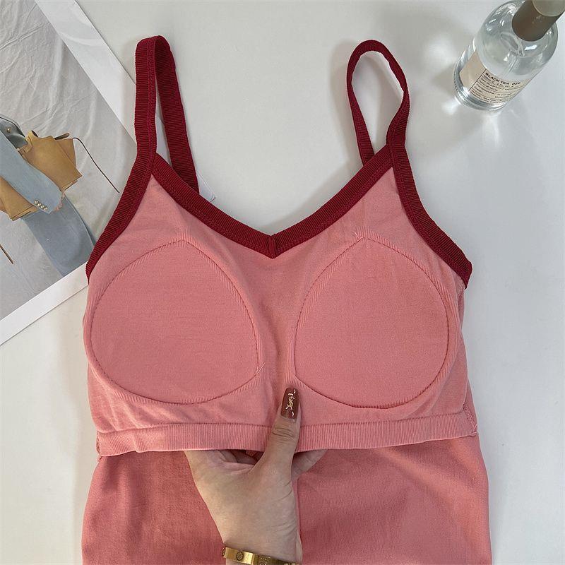 遮副乳吊带小背心女秋冬内搭打底衫带胸垫美背文胸一体上衣秋外穿