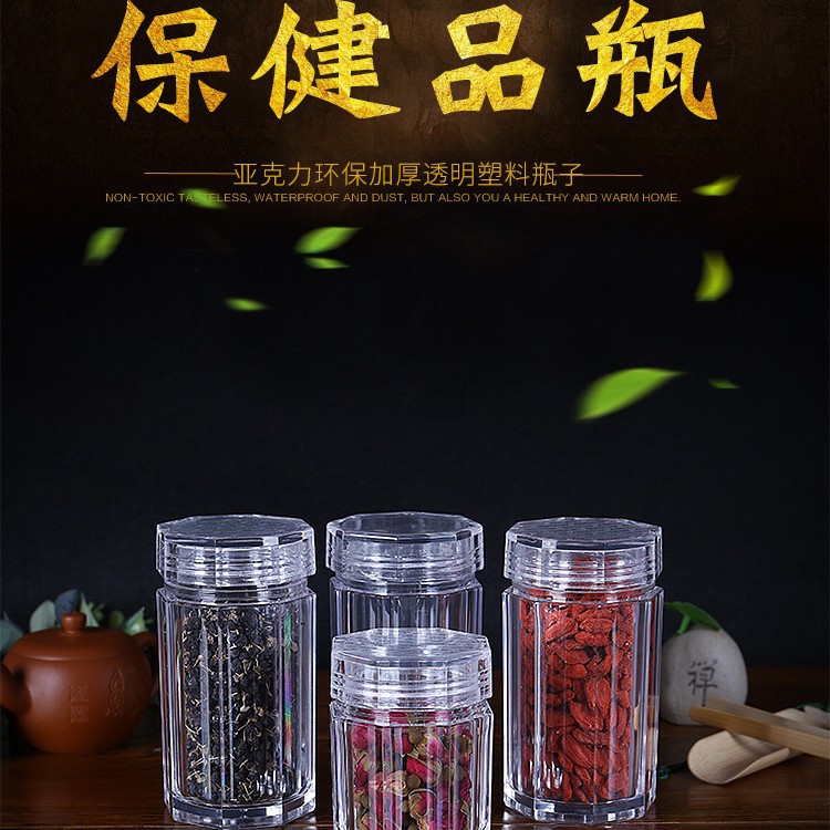 アクリル健康食品ボトル黒クコ冬虫夏草八角包装瓶三七粉チベット紅花密封缶
