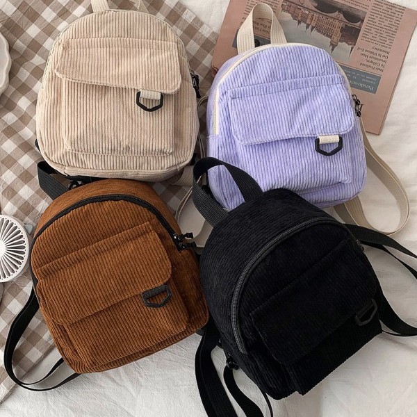 休闲女士单肩双肩多用包新款条绒质感小背包