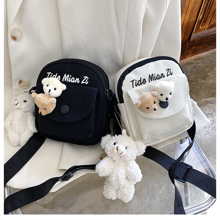 バッグ女性のバッグ新 2025 クロスボディショルダーバッグ漫画かわいい手紙キャンバス学生夏の携帯電話バッグ