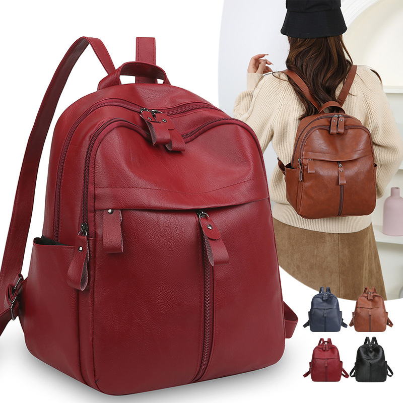 外贸韩版时尚pu软皮双肩包女士休闲大容量户外纯色简约女士双背包