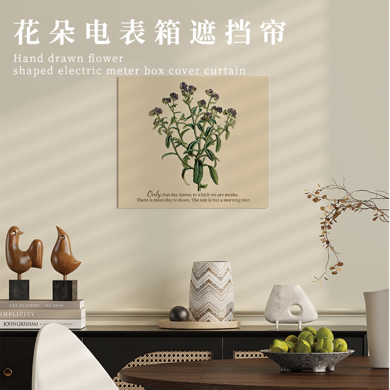 手描きの花の雰囲気のメーターボックスカーテン、玄関リビングルームのスイッチボックスカーテン、カーテン、防塵
