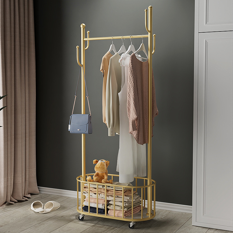 中古衣帽架不锈钢加厚置物架卧室家用挂衣架可移动立式轻奢收纳架