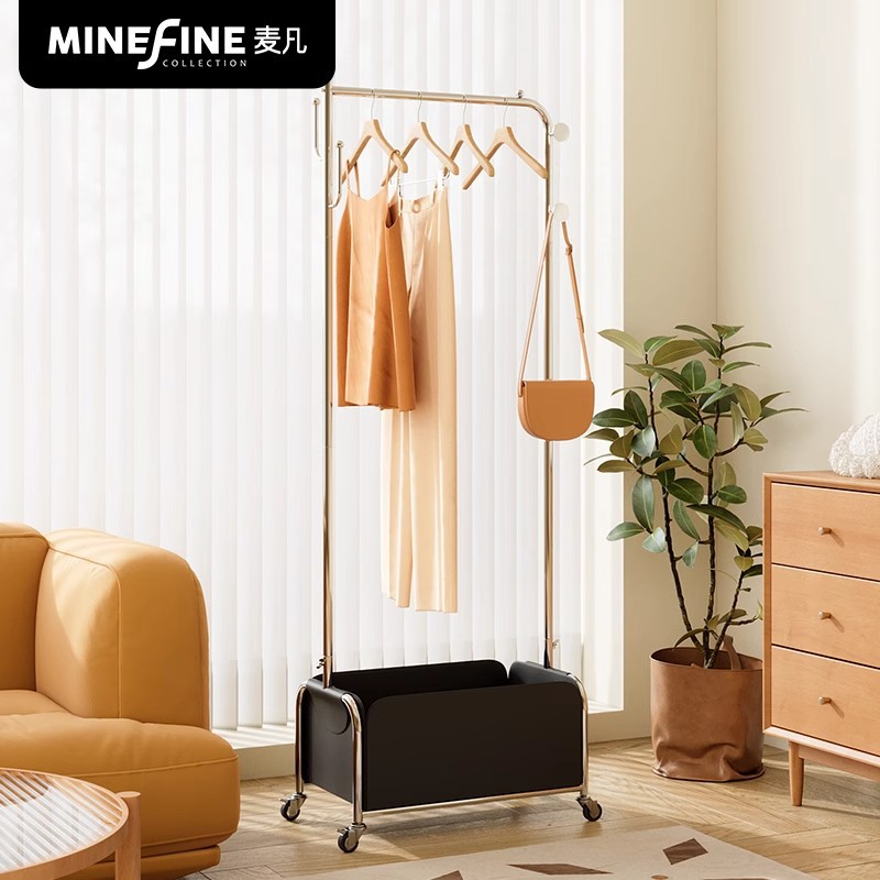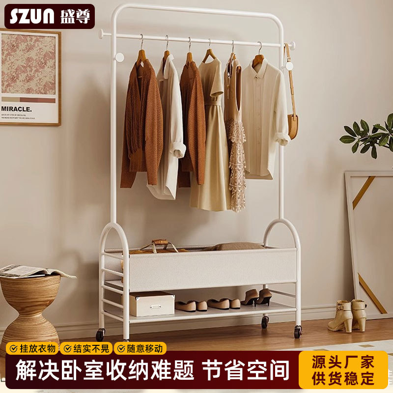 卧室家用挂衣架可移动简约落地晾衣帽架简易中古侘寂风衣服置物架