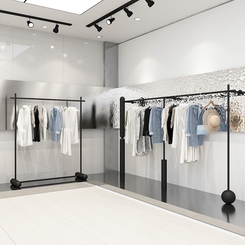 衣料品店ディスプレイラック ステンレス製吊り下げ天井棚 男女兼用子供服 黒色ディスプレイハンガー ウェディングドレスラック