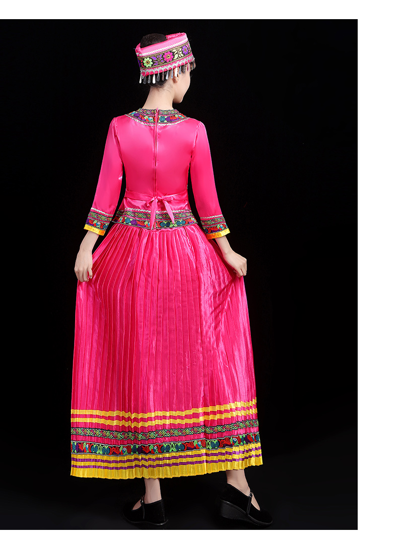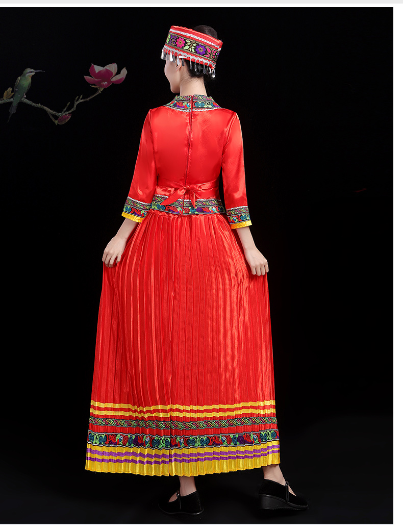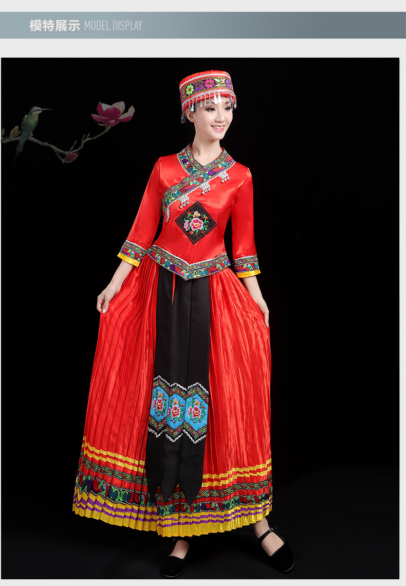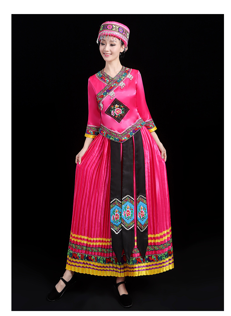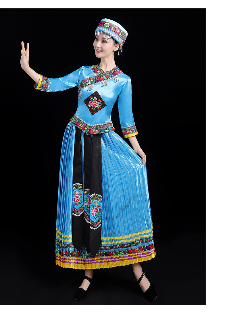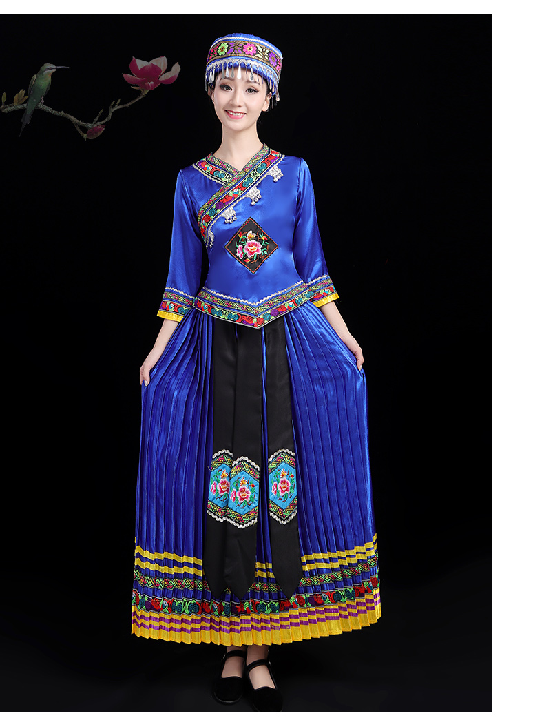 少数民族の特色の伝統的な徳昂族の服装の女性の舞台の合唱はダンスの演技の服のスーツを演じます。