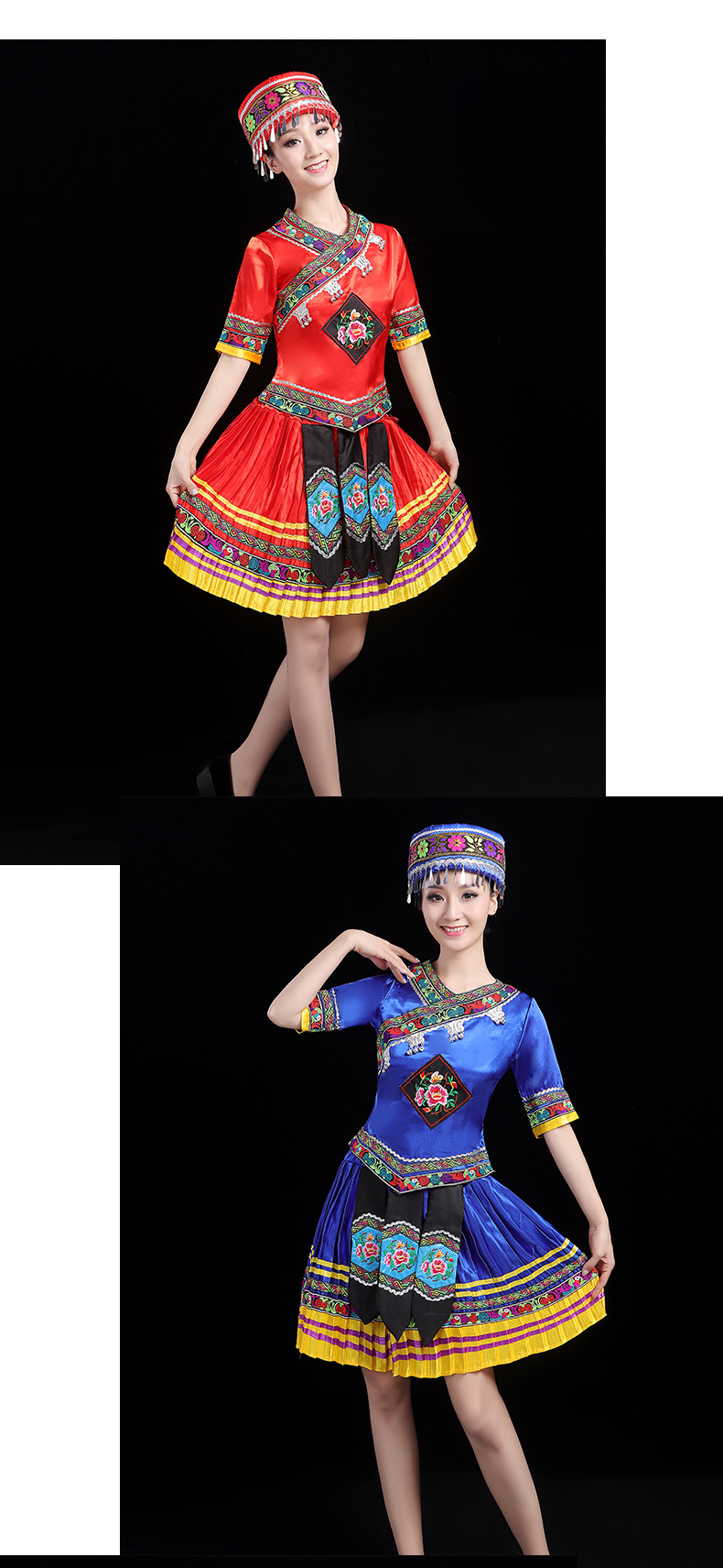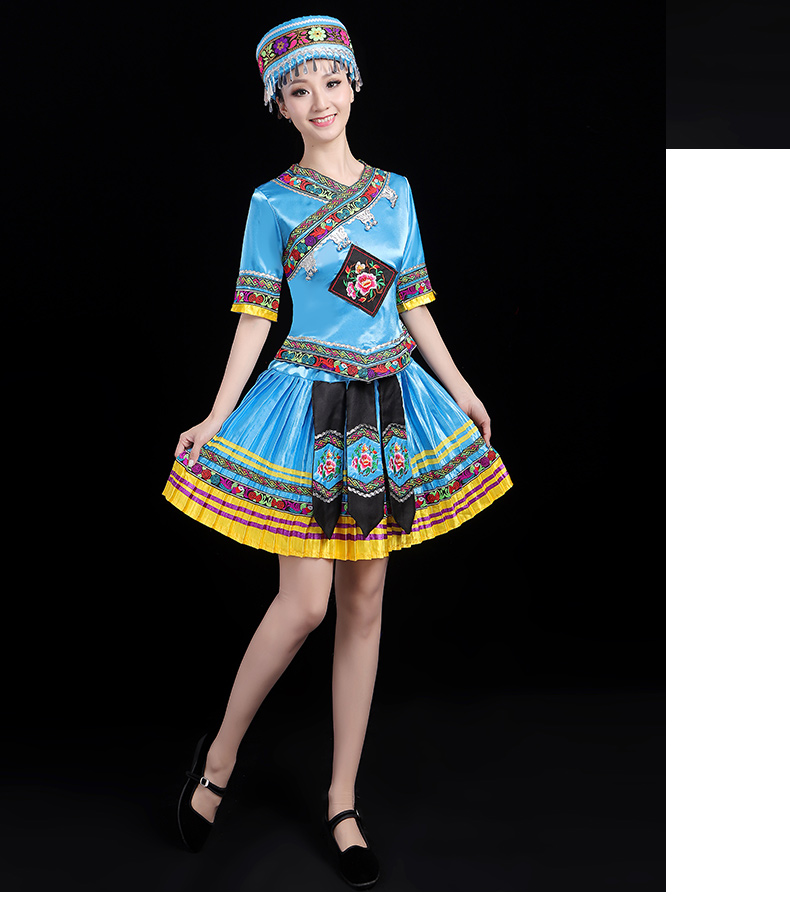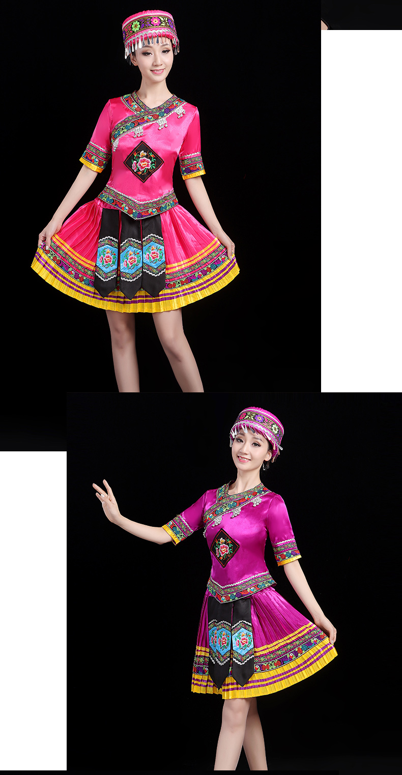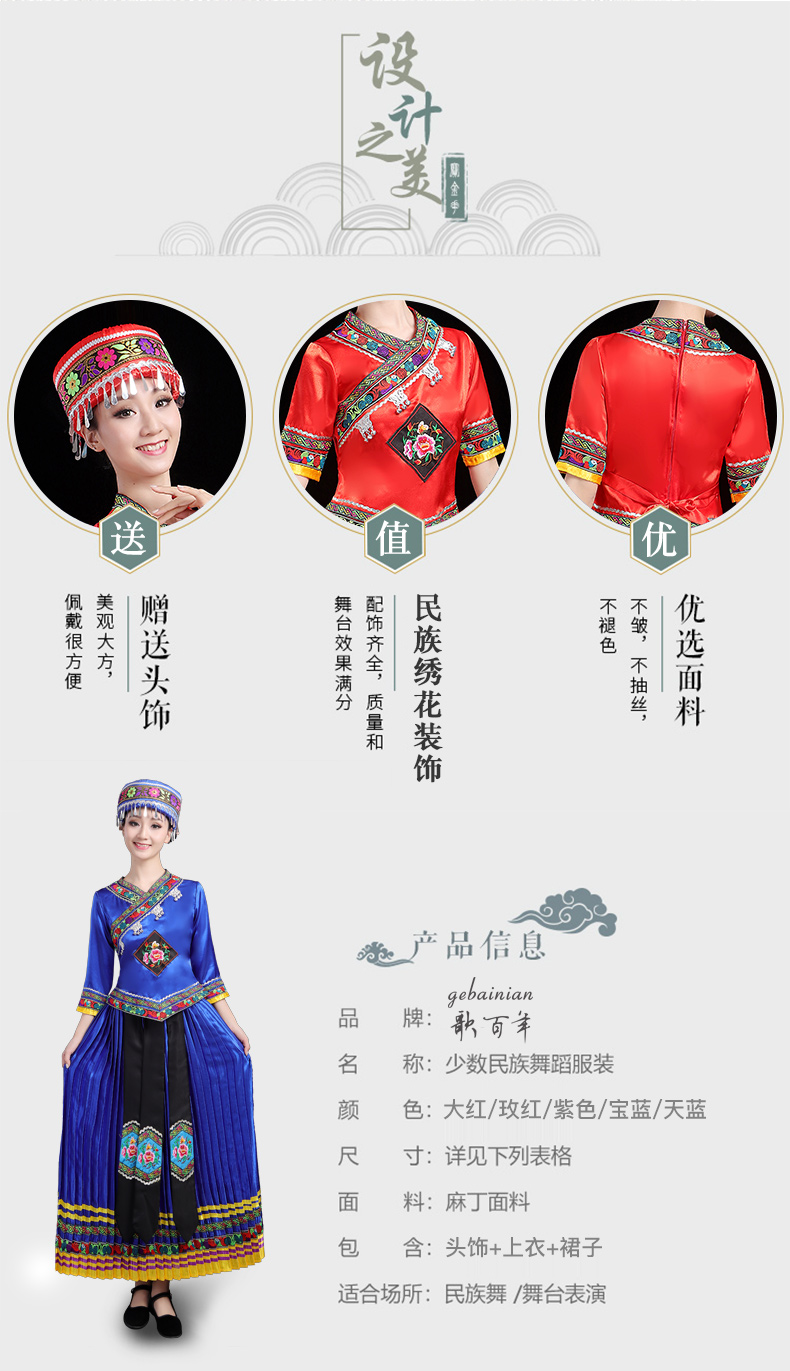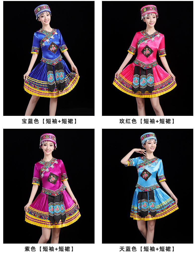 少数民族の特色の伝統的な徳昂族の服装の女性の舞台の合唱はダンスの演技の服のスーツを演じます。
