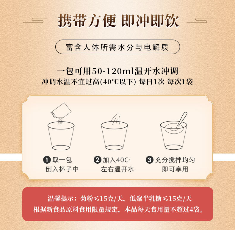 主な原料 オリゴイソマルトース、オリゴフルクトース、オリゴガラクトース、水蘇糖、オリゴキシロース、食用グルカン、食用塩、沙棘粉、菊粉など