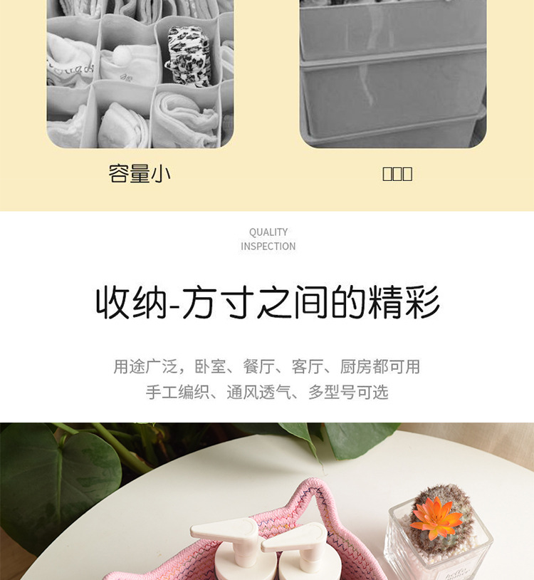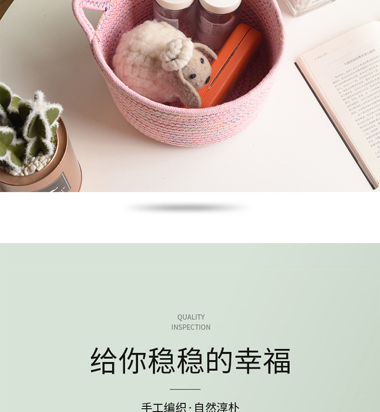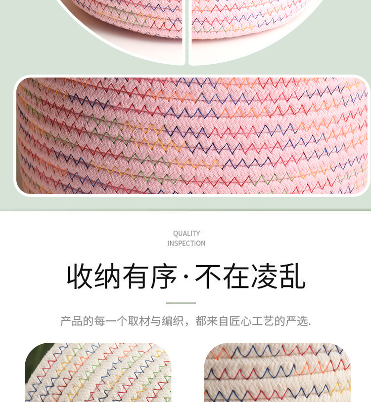 北欧彩点棉绳收纳篮带盖桌面收纳盒置物筐钥匙杂物收纳化妆收纳筐