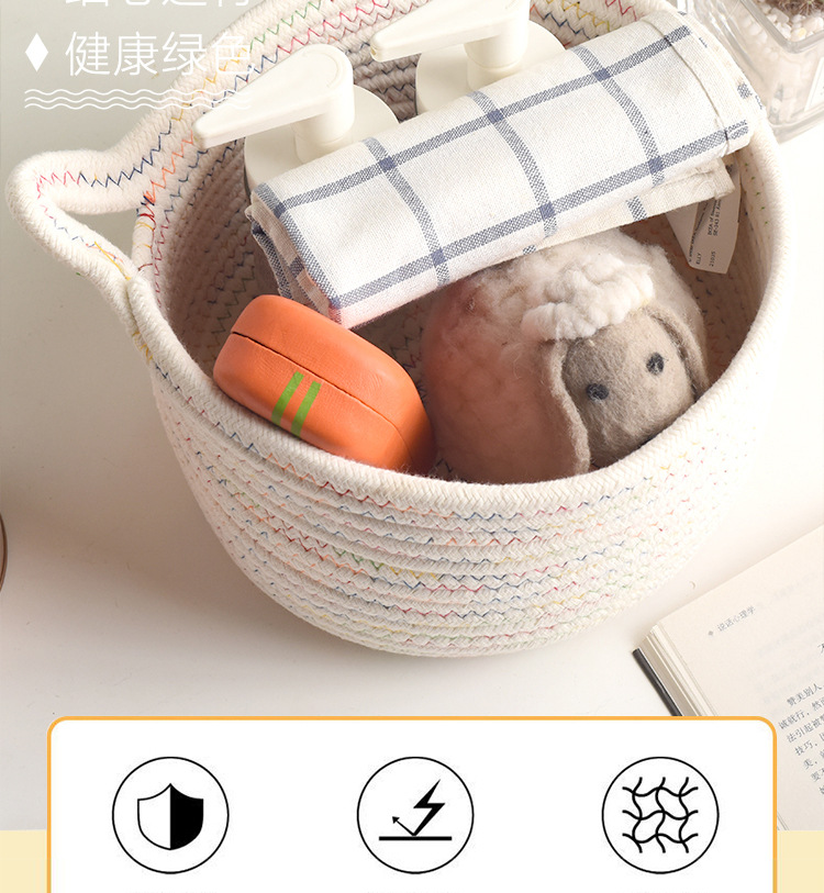 工場卸売 綿ひも収納かご 持ち手付き 便利 デスクトップ雑貨収納バスケット 丸型収納かご 小型収納