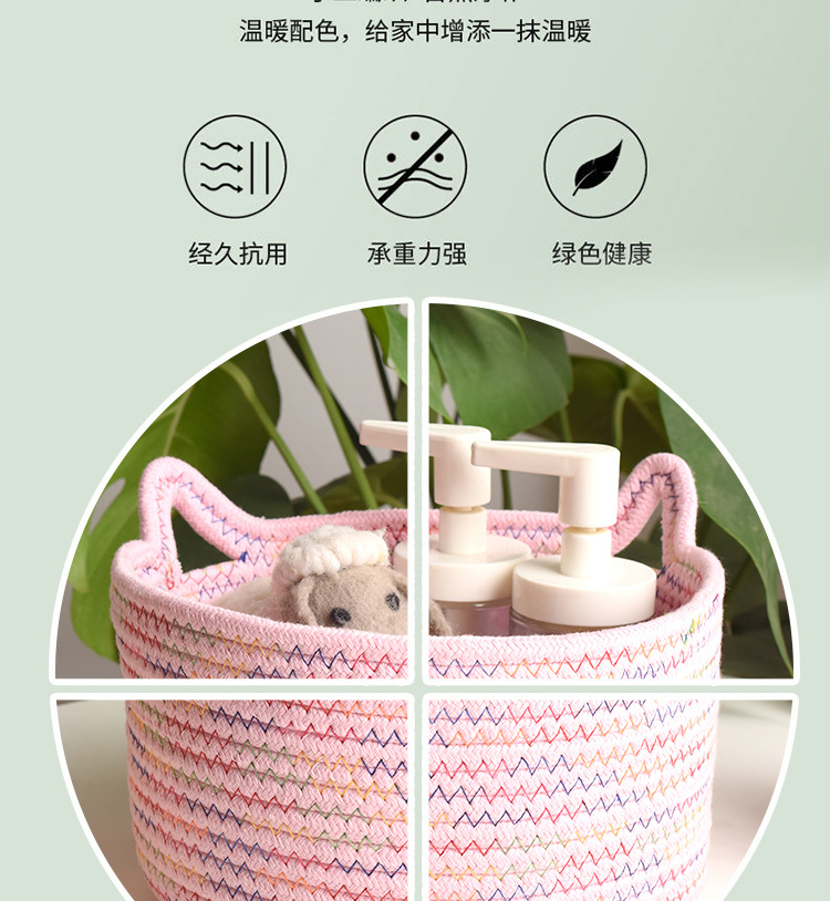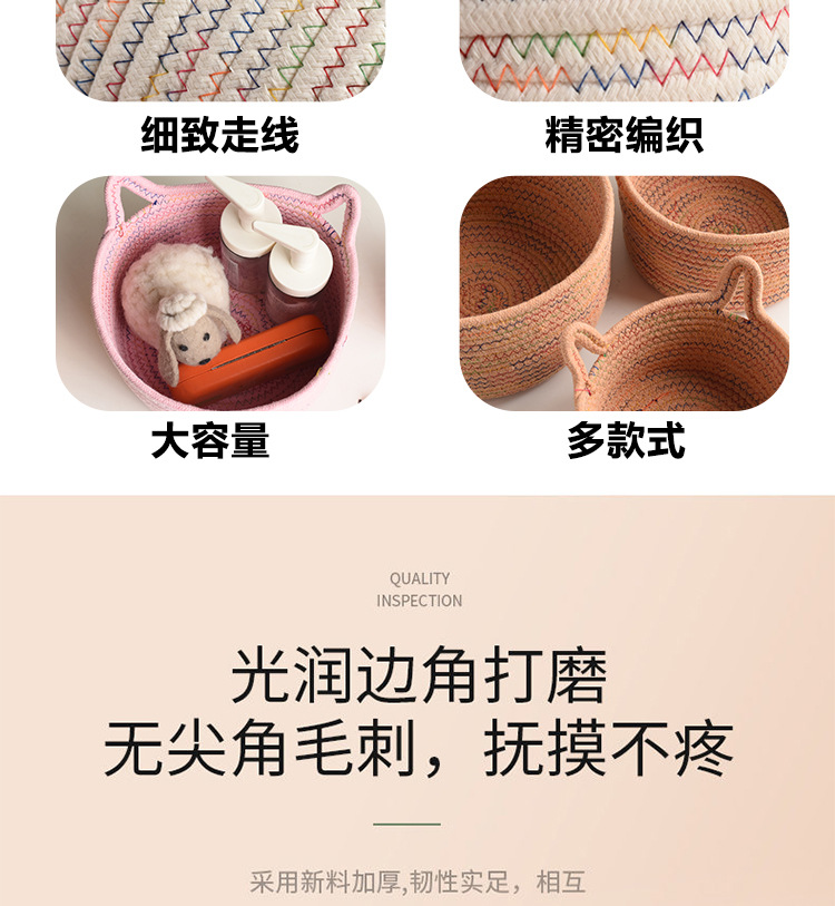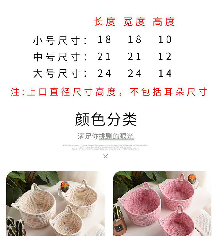 跨境猫耳收纳筐棉线手工编织置物蓝家居桌面化妆品零食玩具收纳筐