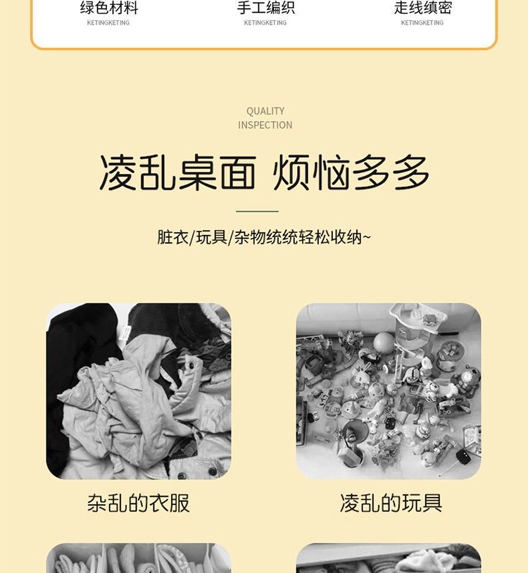 桌面收纳筐可爱kt猫棉绳编织带盖收纳篮