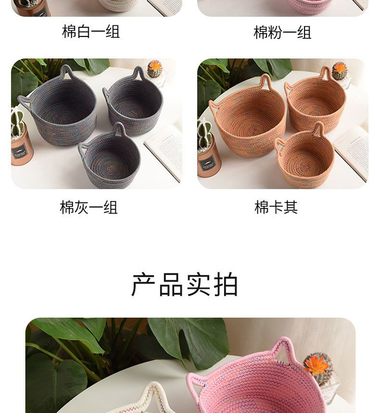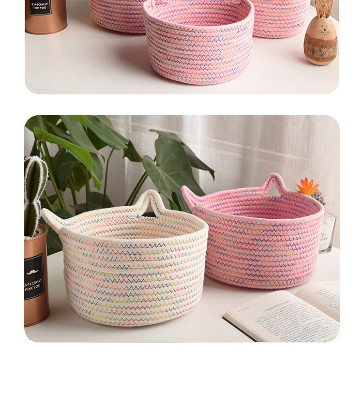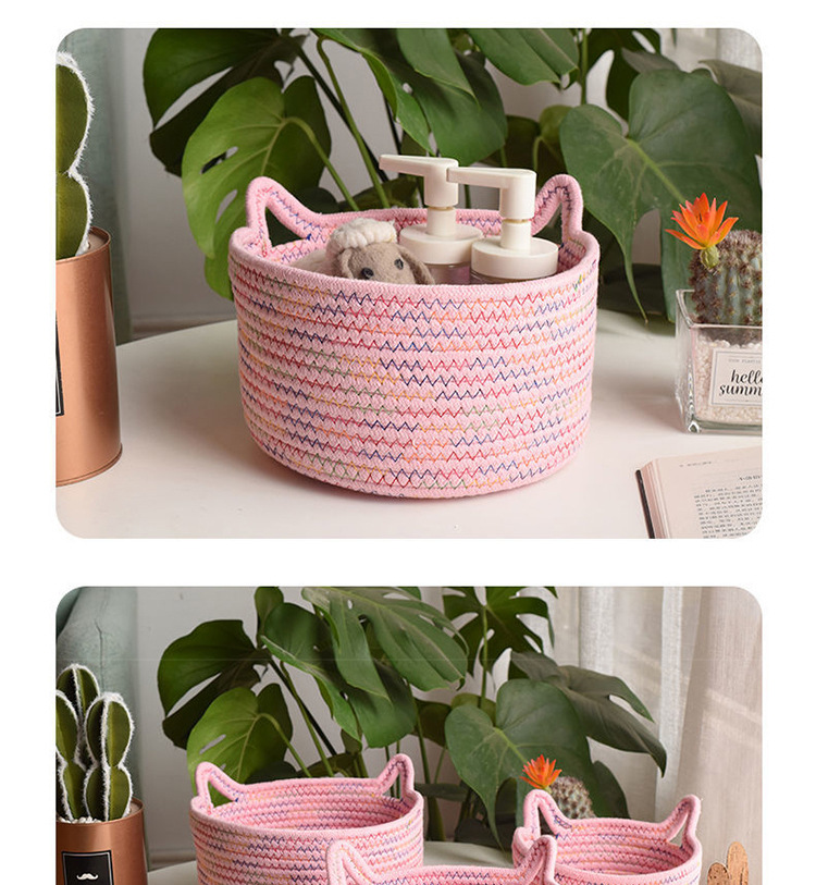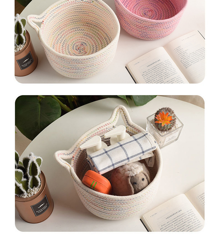 新型猫耳デスクトップ収納かご手編み綿糸収納かごベッドサイド収納かごキー収納かご
