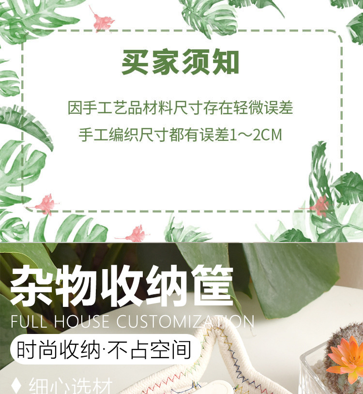 デスクトップ収納バスケット手編み綿ロープ収納バスケット鍵雑物スナック収納枠布芸玩具収納バスケット