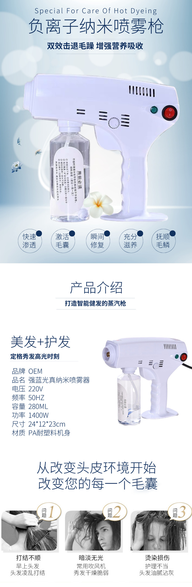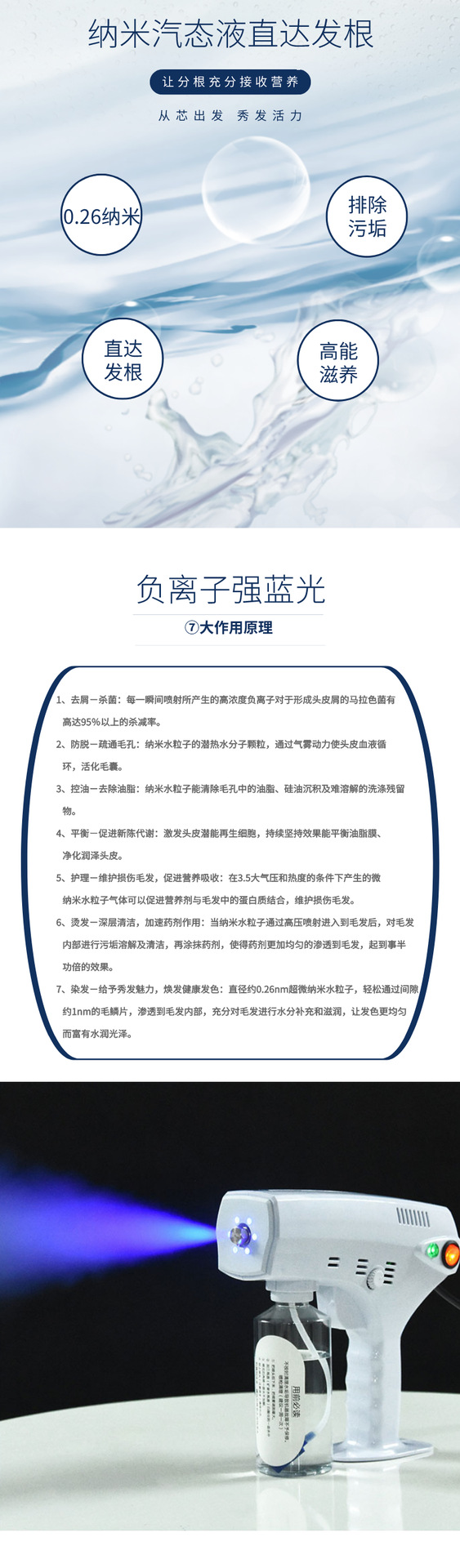 臭氧纳米喷雾蒸汽枪护发仪红蓝光雾化喷雾机护发补水养发头皮护理