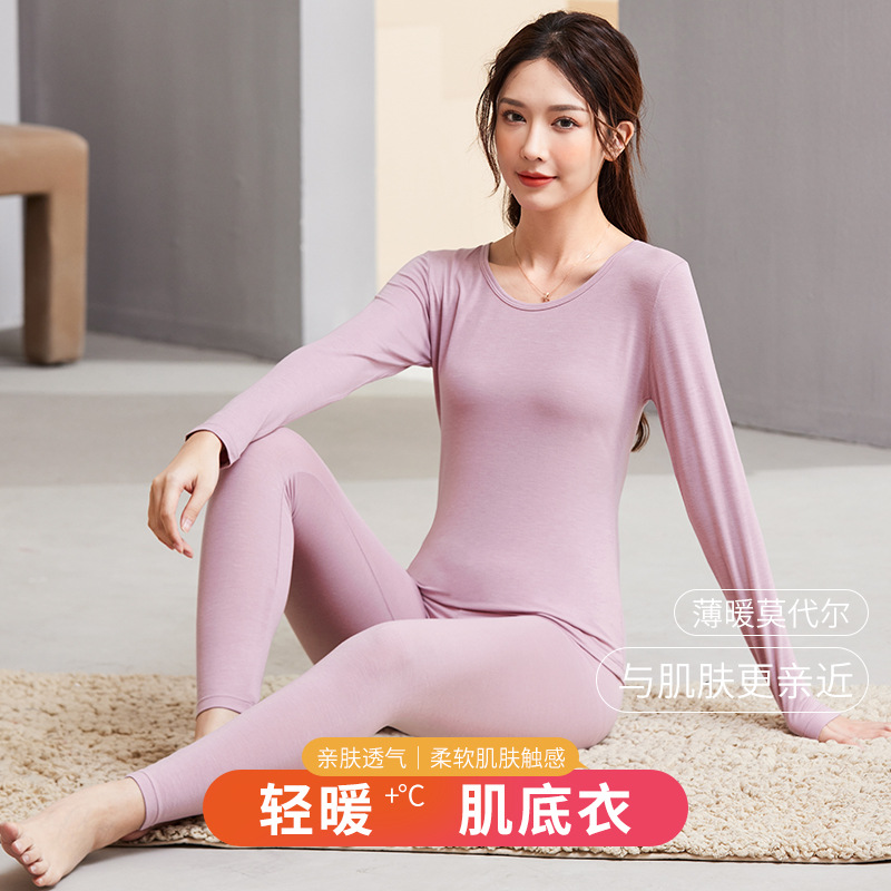 モーダル秋衣秋ズボンセット女性用の薄い保温下着の薄い底のシャツの糸のズボンの大きいサイズのガードル