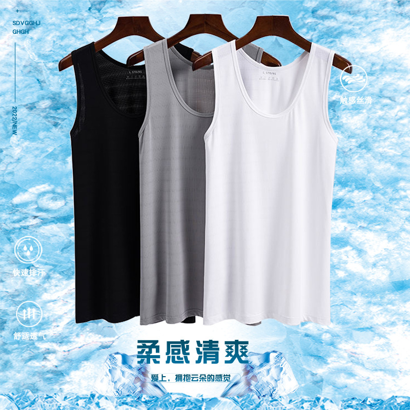 男性の無傷の氷の糸のベストの男性の潮の薄い金の袖なしのtシャツのフィットネスのタイトなスポーツのバスケットボールの速乾の外は肩を着ます。