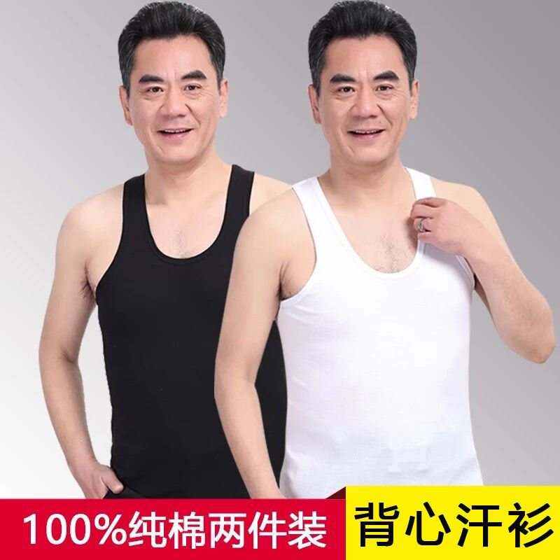 中高年ベスト男ノースリーブサスペンダーハードル新疆綿スウェットシャツ夏ゆるい通気性コットン中年老人シャツ