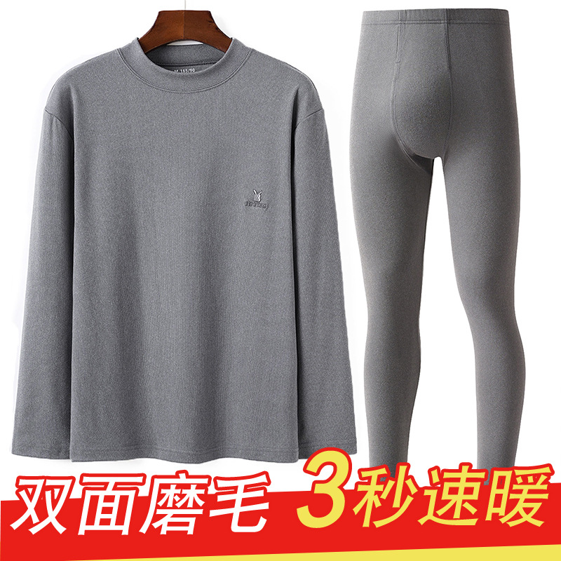 両面パイル徳保温下着男性厚パイル徳防寒パジャマ秋衣秋ズボンセット丸襟秋冬