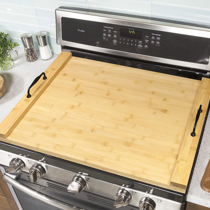 竹製ガスコンロ蓋板ハンドル付き家庭用キッチン電気炉仕切り板まな板木製パネル果物トレイ