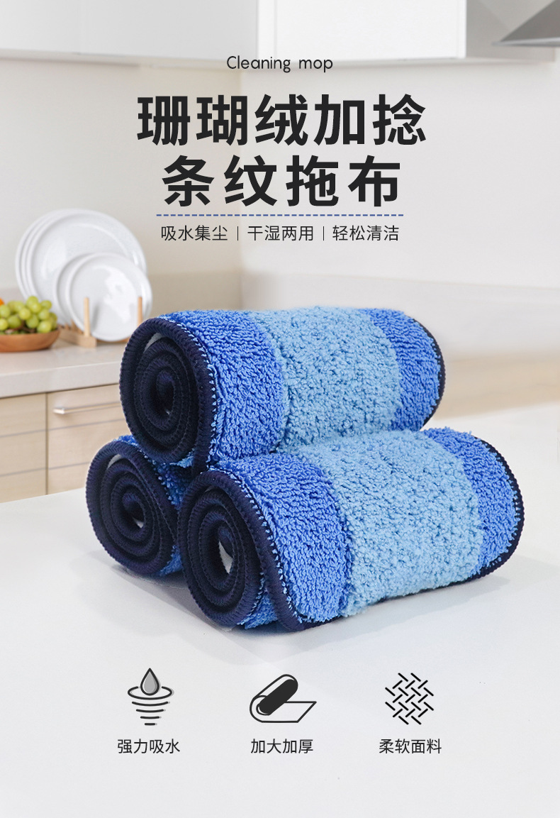 サンゴフリース製フラットモップ交換用クロス、厚手、乾湿両用、家庭用床掃除、吸水性、取り外し可能、洗える、交換可能