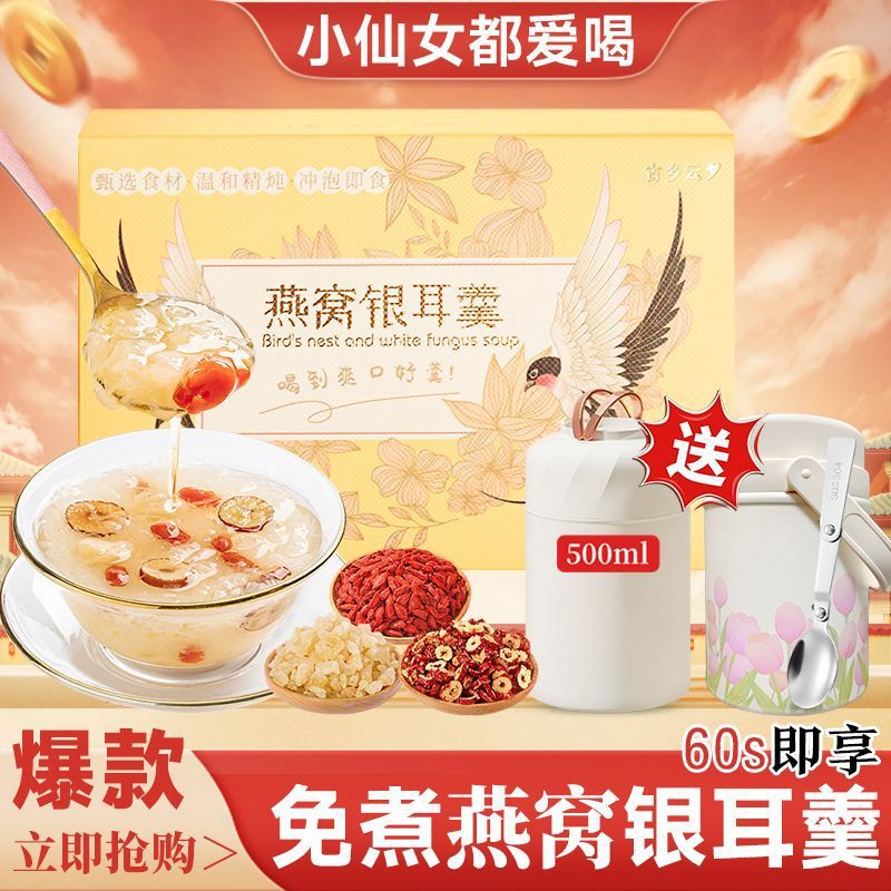 燕窝银耳羹免煮冻干冲泡即食红枣枸杞茶滋补营养早餐速食鲜银耳