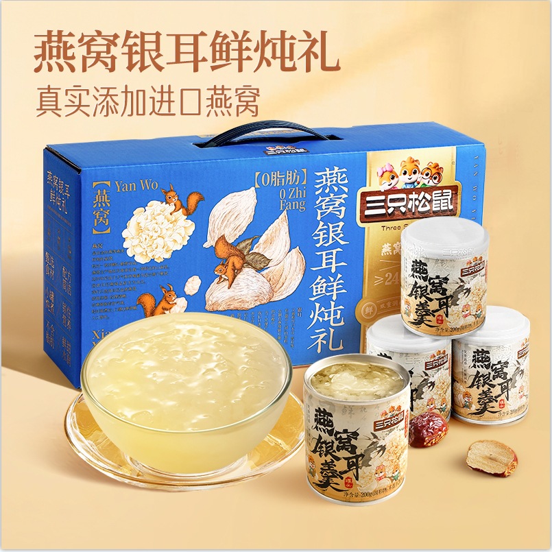 Three Squirrels_新鮮な煮込みトレメラ 1600g インスタントツバメの巣、赤いナツメヤシ、クコのスープ、高齢者向けギフトボックス