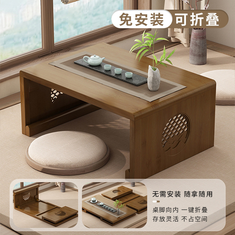 胡桃木色竹製折りたたみ茶卓畳小茶何国学テーブルのオンドルのテーブルに窓があります。