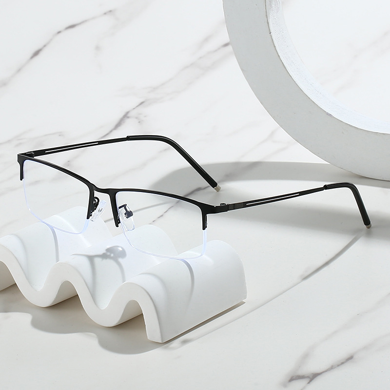 ビジネスカジュアルハーフフレームメガネフレーム、ハンサムな科学技術男性用メガネフレーム、完成した近視メガネ、フォトクロミックメガネを装備可能