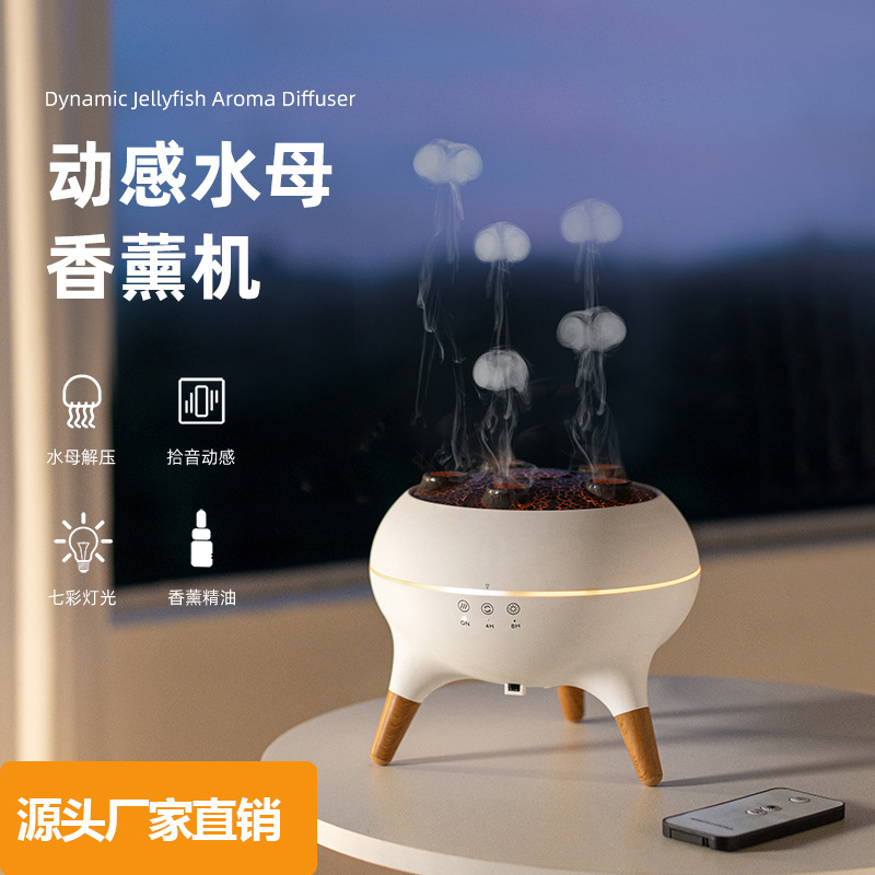 国境を越えた新製品 炎の煙輪アロマディフューザー 寝室のデスクトップ用カラフルライト 多孔質ダイナミッククラゲアロマディフューザー