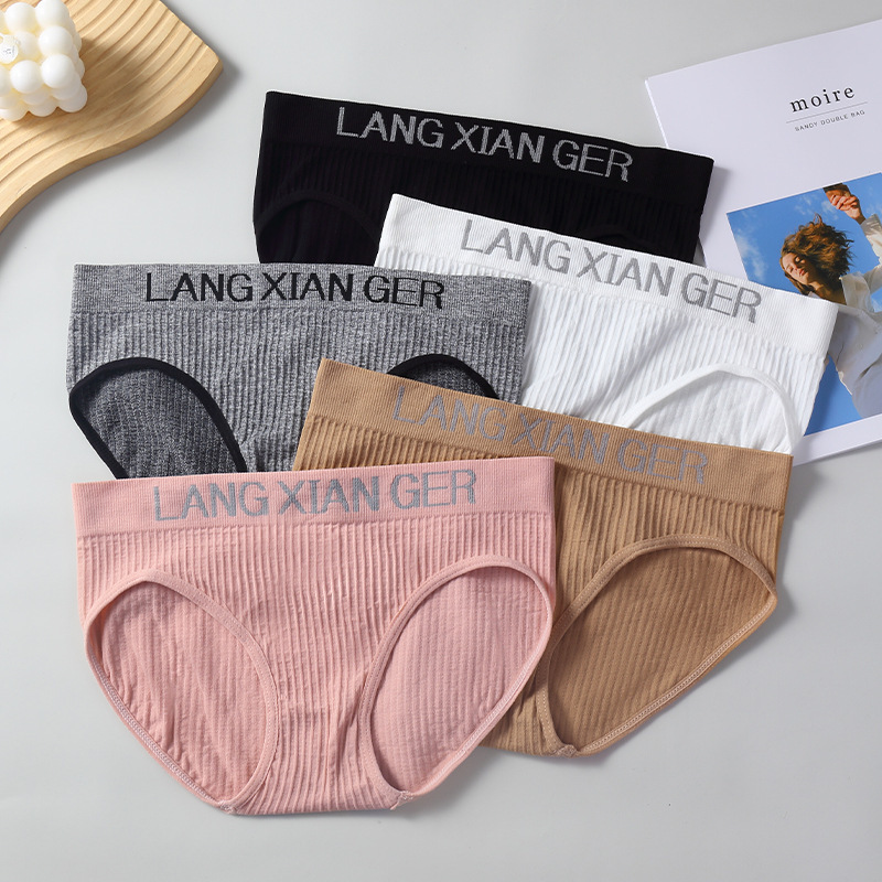 運動少女シームレス下着女性中腰高弾綿股通気シンプル無痕アルファベット英語下着女性