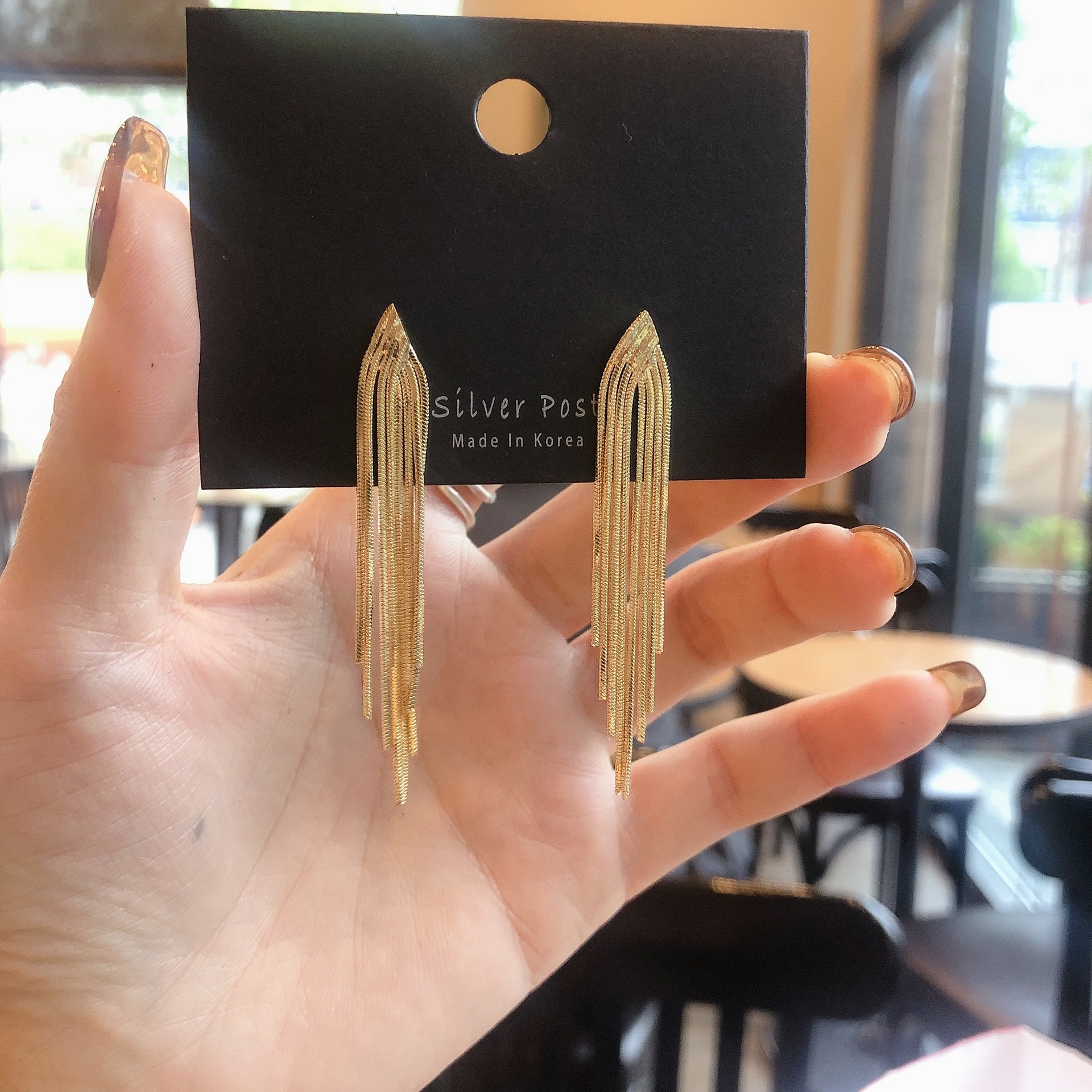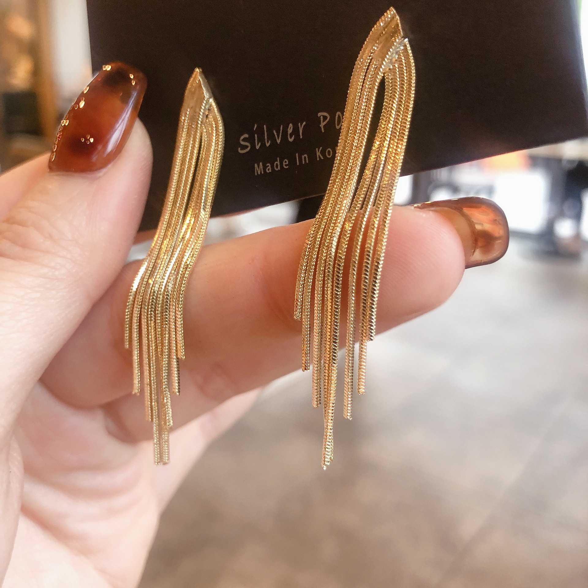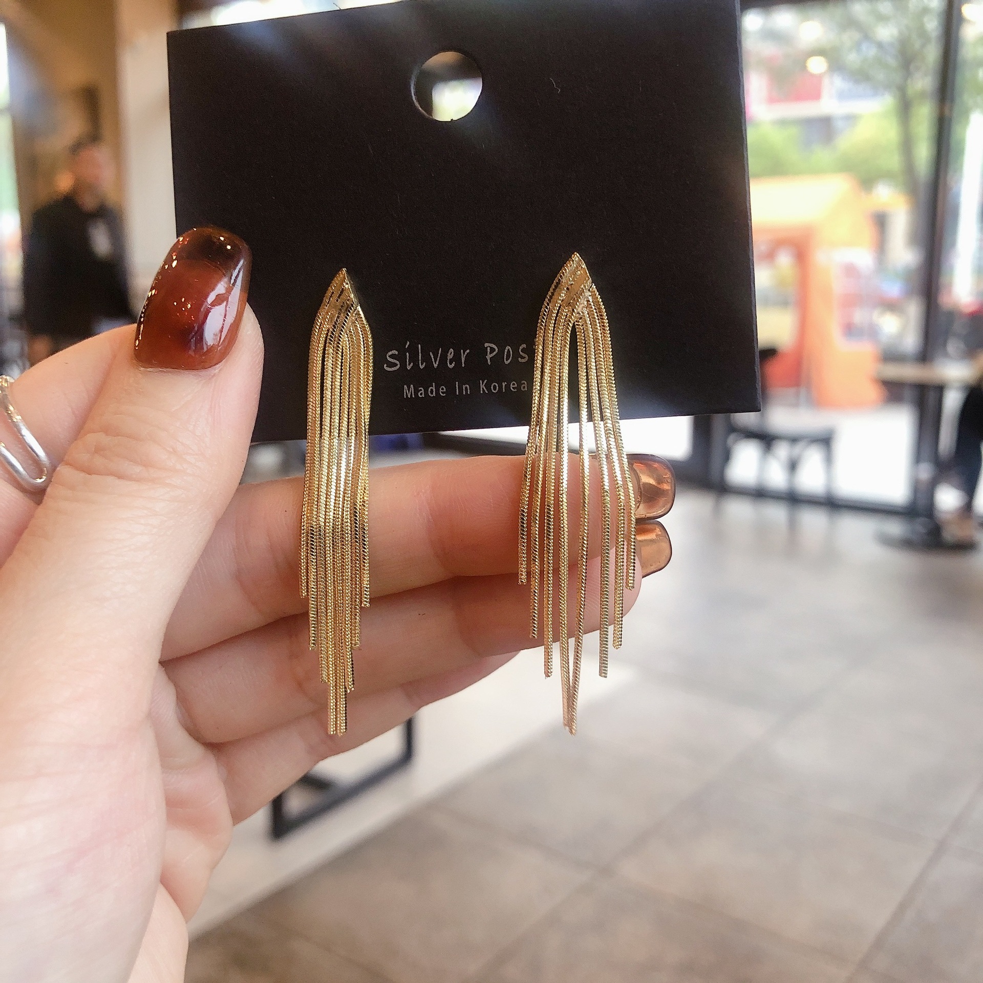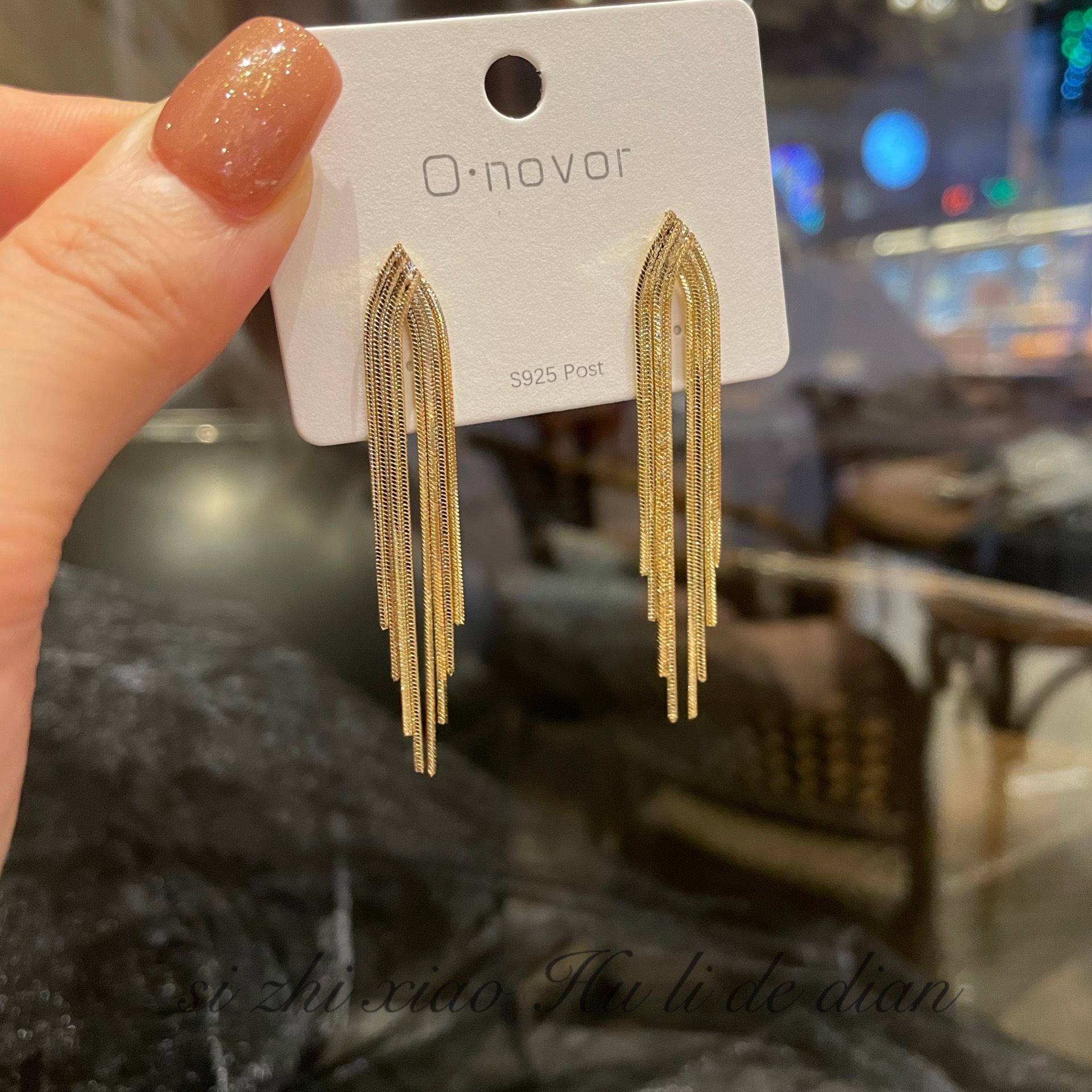 925银针韩国镀金显脸瘦流苏耳钉短款耳环个性百搭金属耳饰