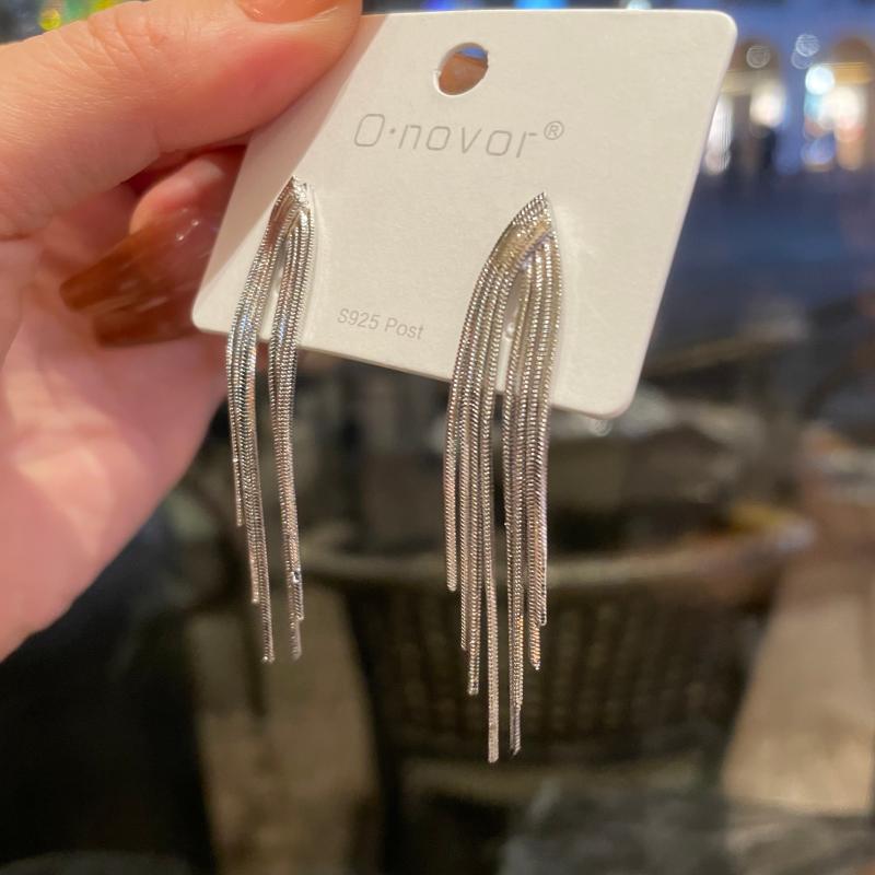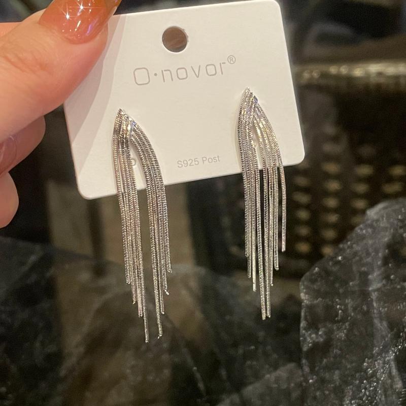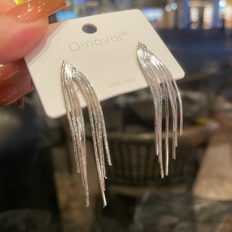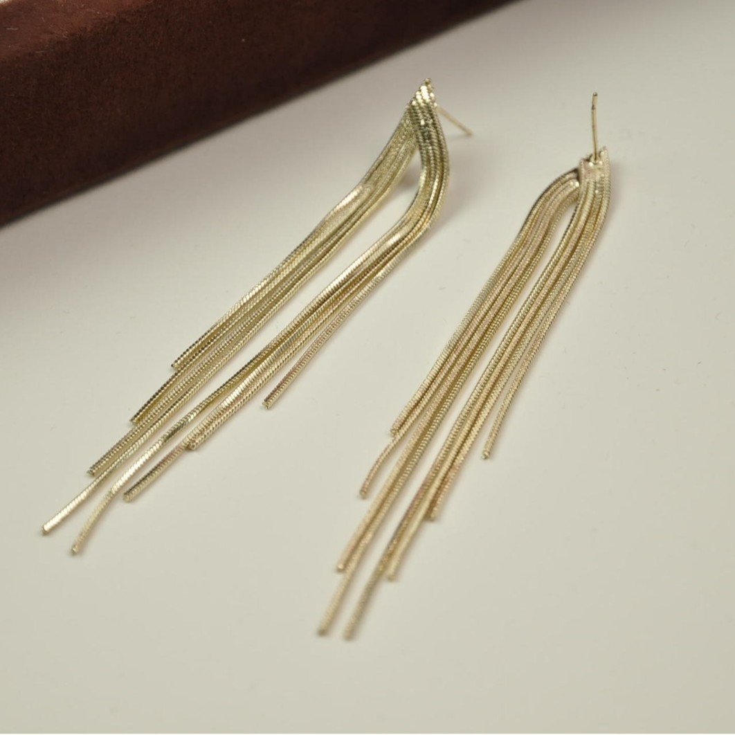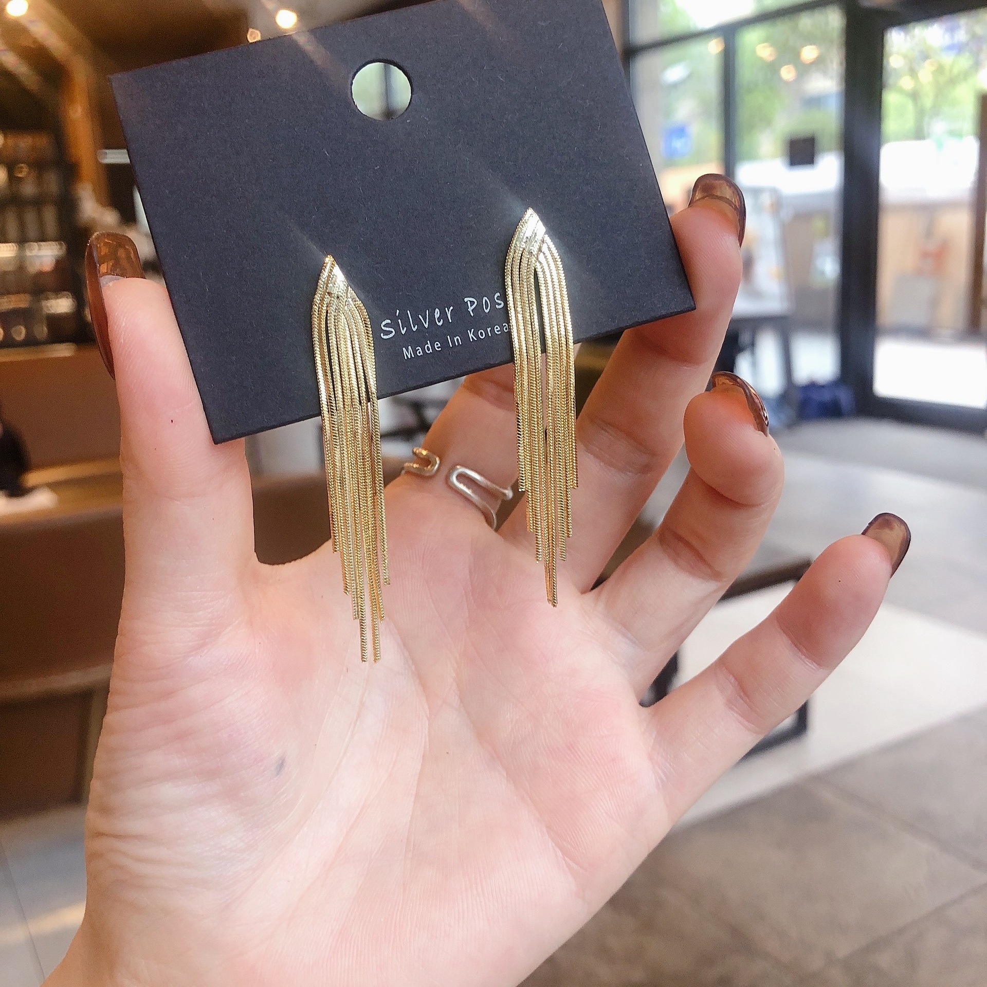 925银针韩国镀金显脸瘦流苏耳钉短款耳环个性百搭金属耳饰