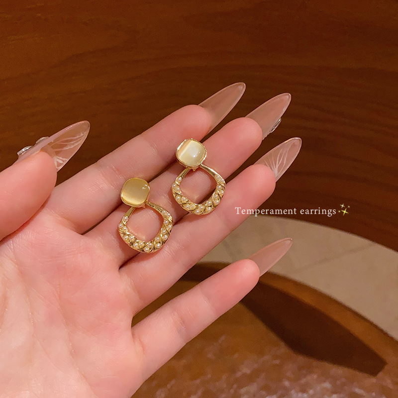 軽豪華小衆高級感猫眼石幾何形イヤリング女性ファッション百合気質ネット赤同金真珠ピアス