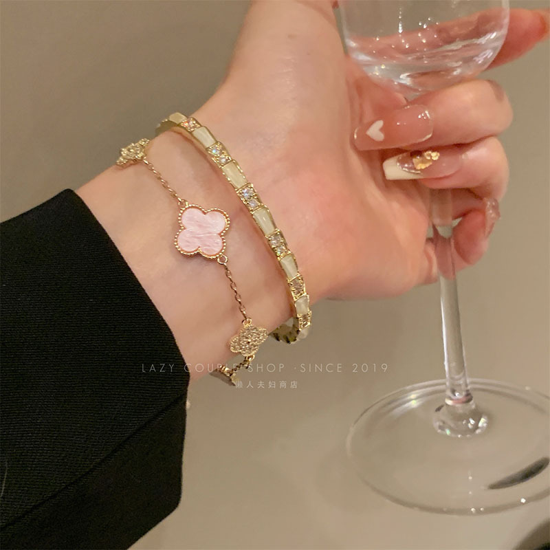 爆款钛钢幸运草四叶花朵手链轻奢高级感女不掉色时尚不锈钢手饰品