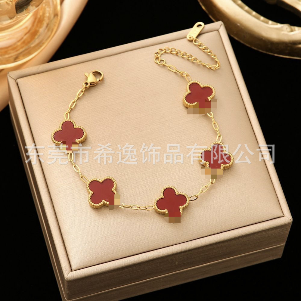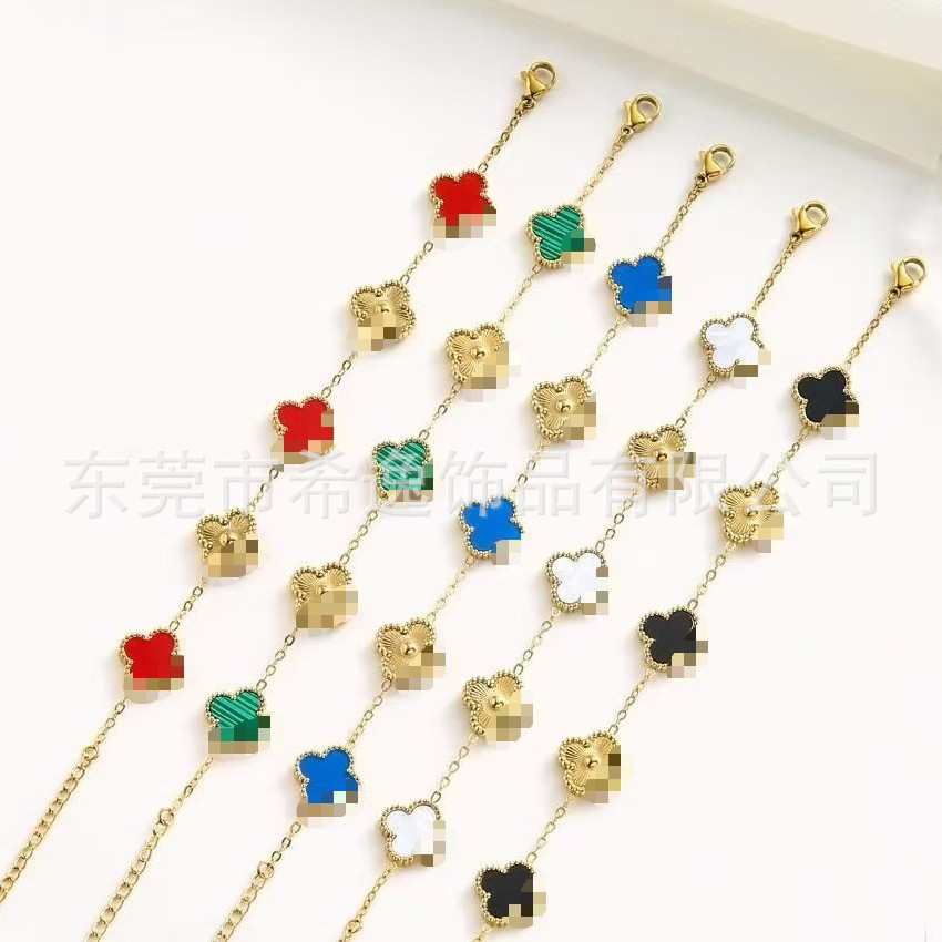 跨境爆款13mm五花四叶草手链18k钛钢不掉色五花时尚百搭手饰批发