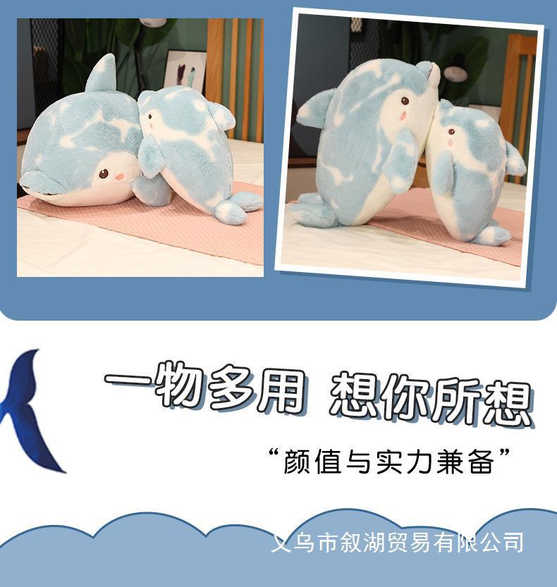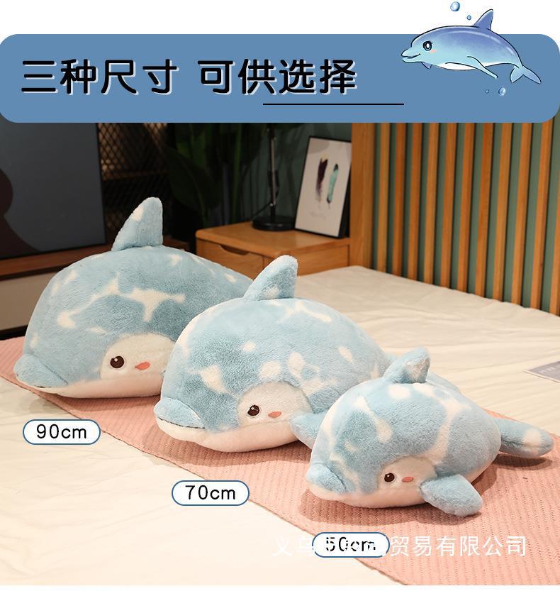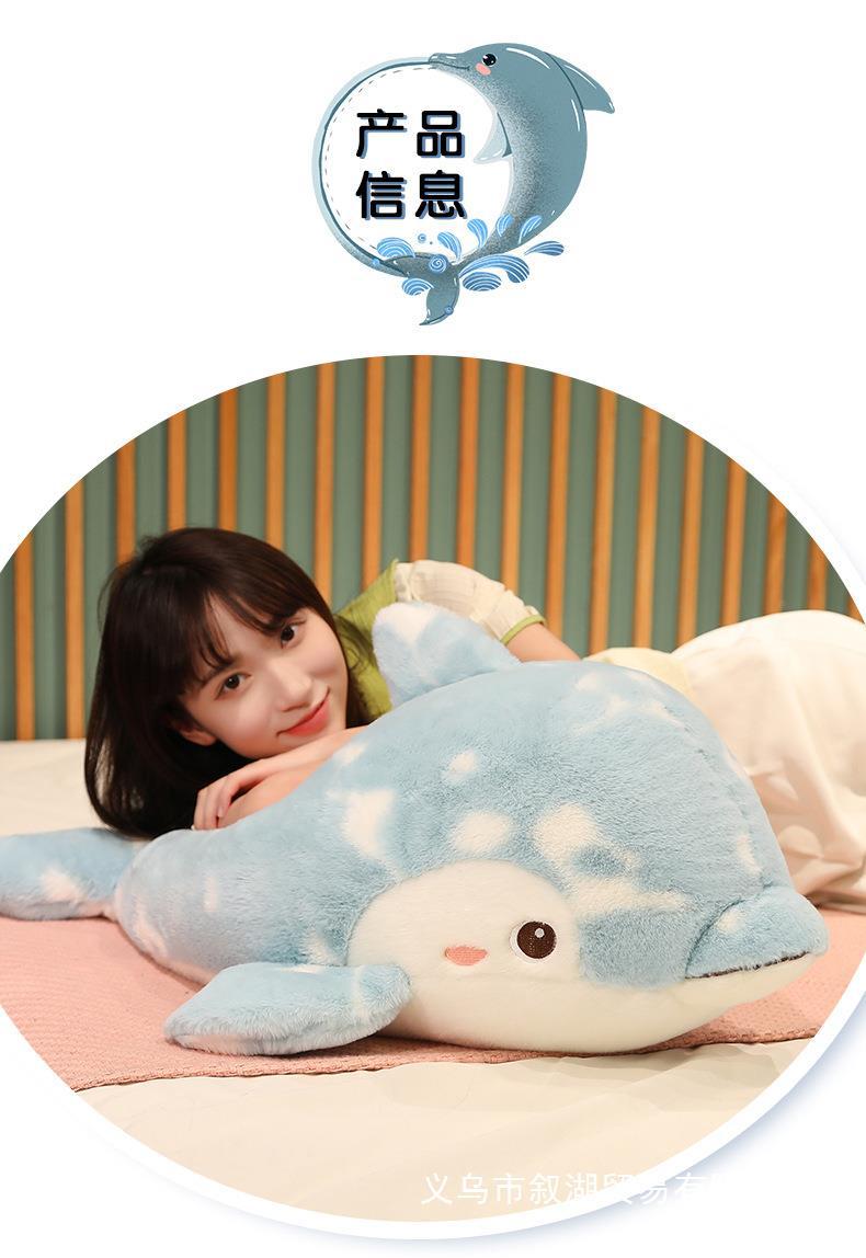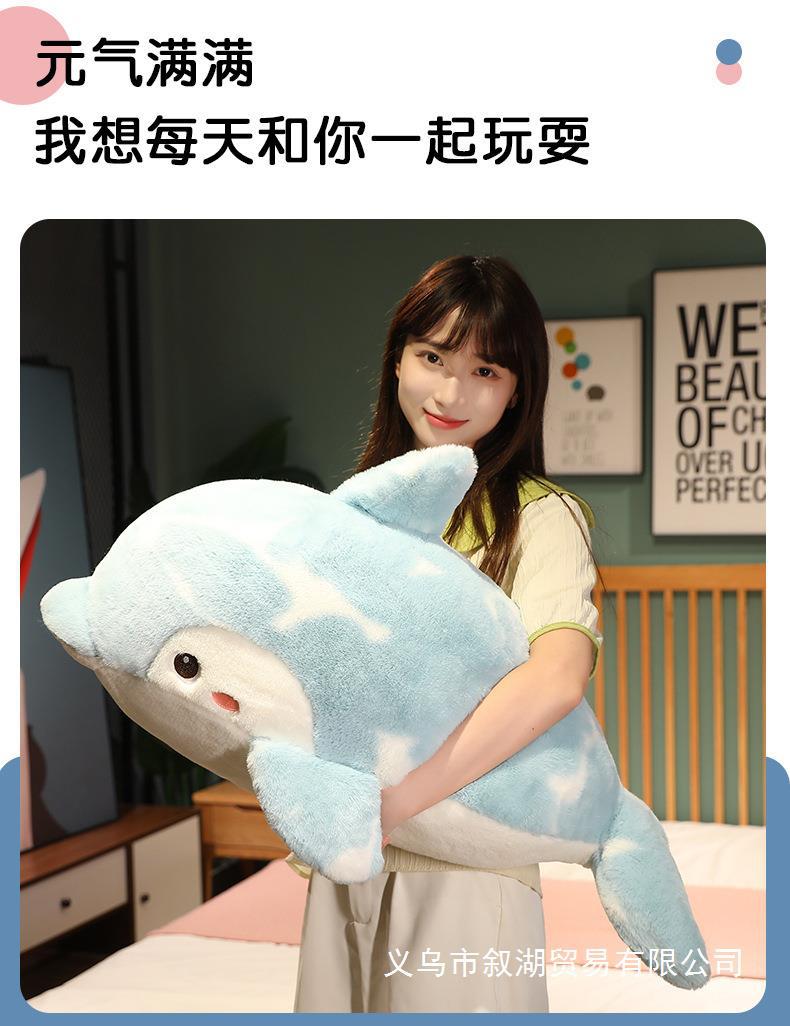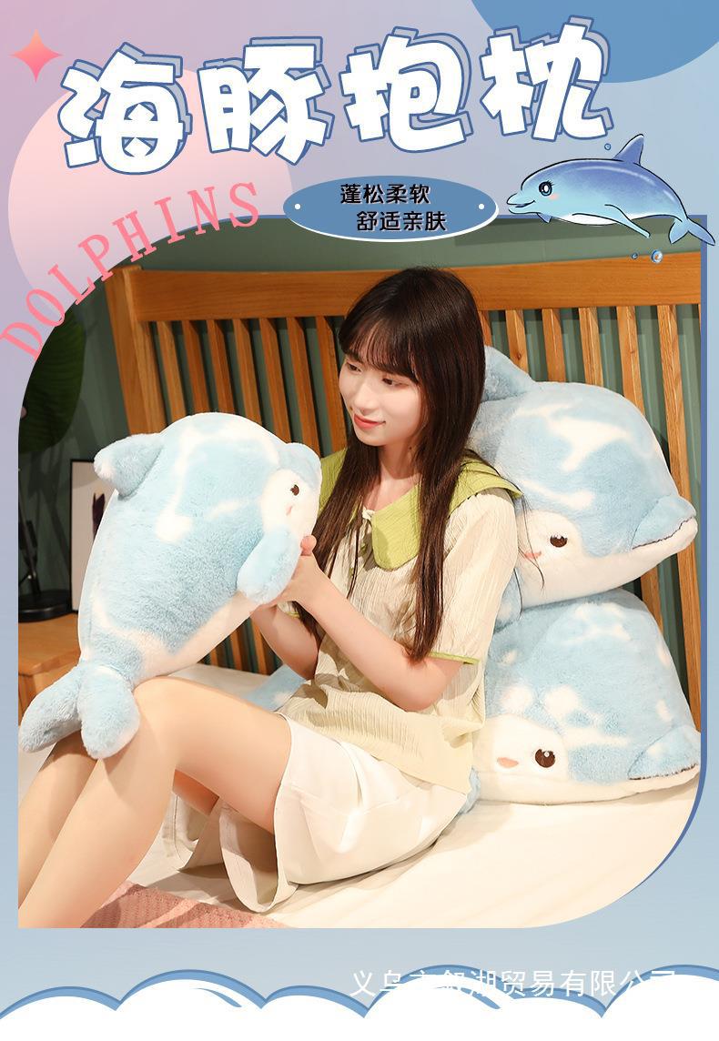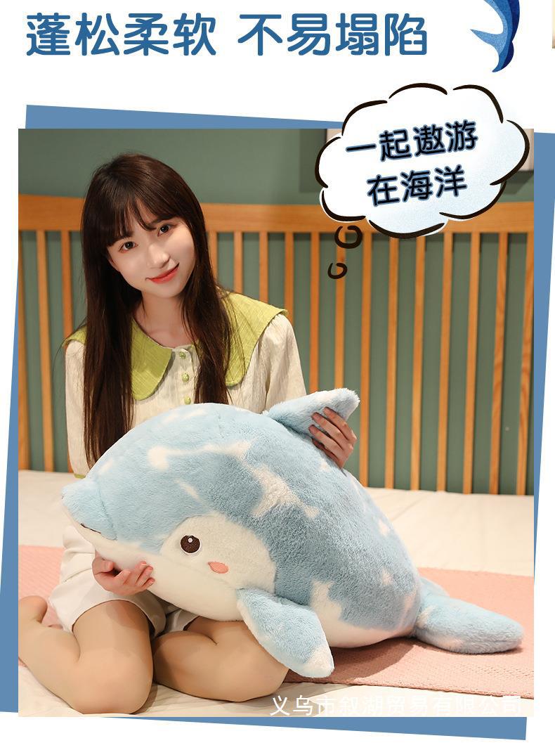 かわいい星空のイルカのぬいぐるみの女の子のベッドの上で寝ます。