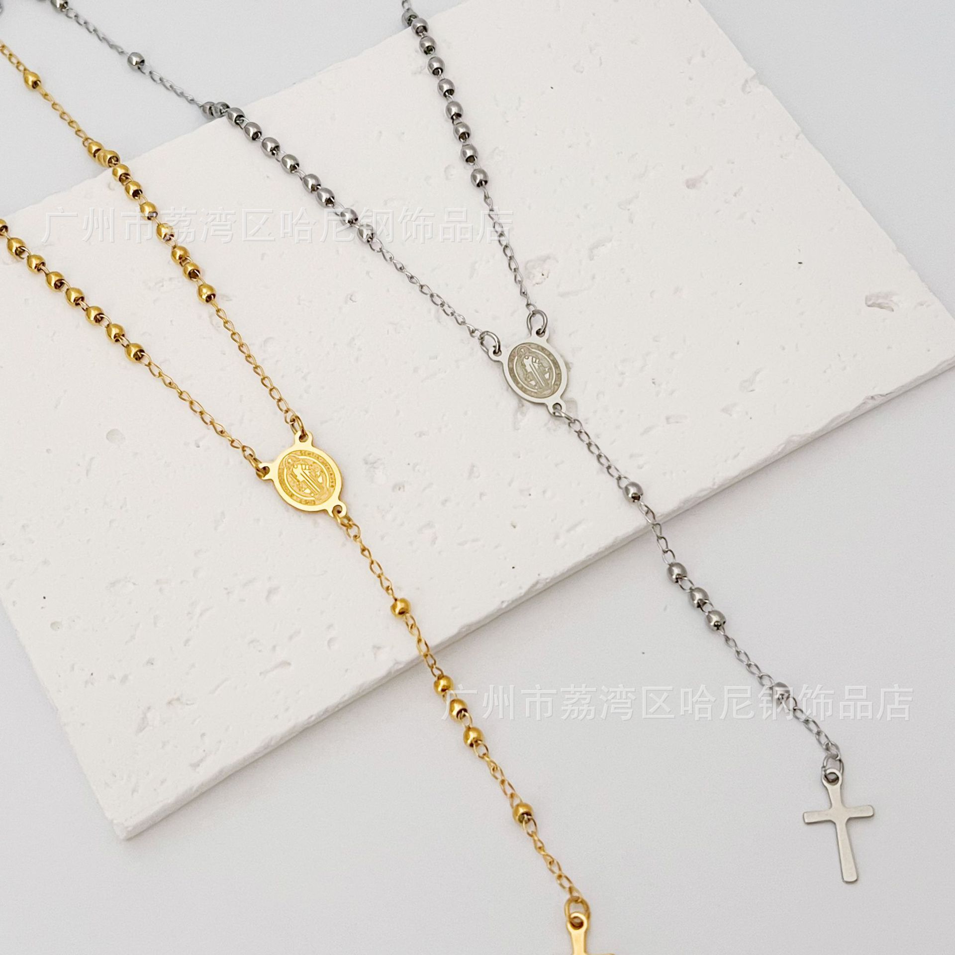 欧米風西洋宗教トーテムステンレスネックレス神父金円珠ネックレス復古風クロスネックレス