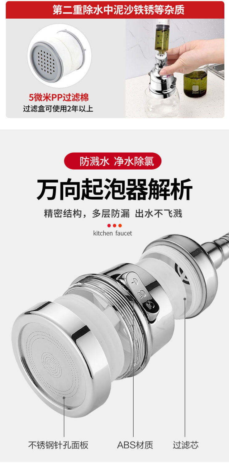 蛇口のスプラッシュ防止のヘッドフィルターの通用万能の洗面器の花は台所の増圧のエクステンションをかけます。