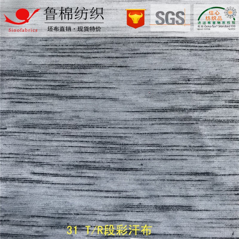Tr段染彩点汗布ab白黒竹節糸拉毛人綿弾力彩条循環粗針ジャカード布