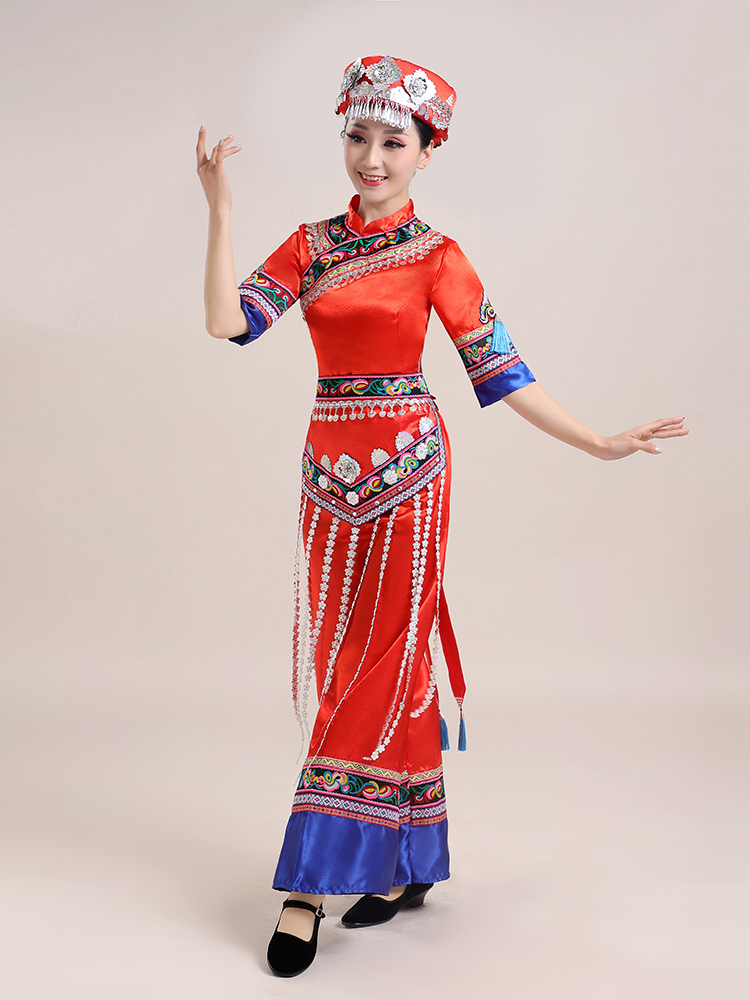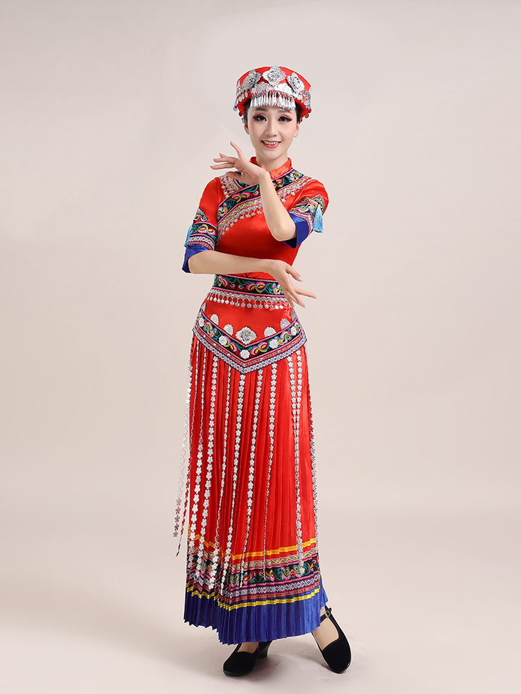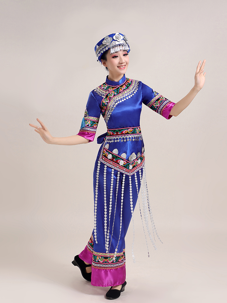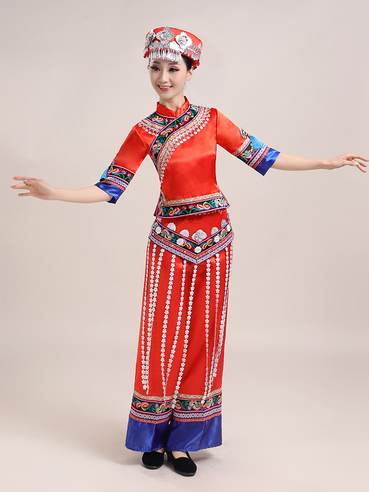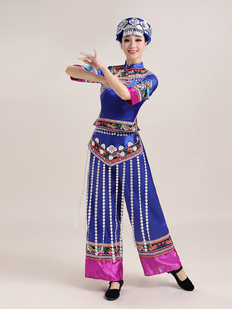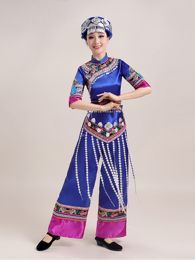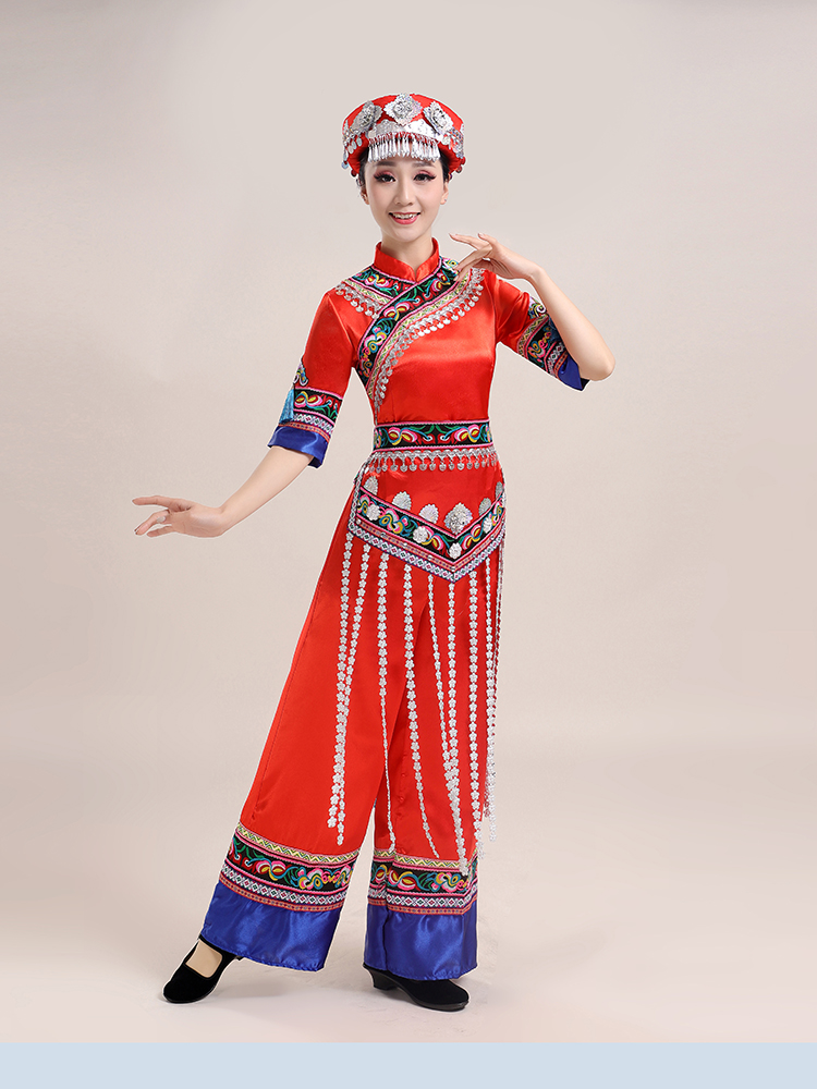 新民族風演出服怒族服装女性少数民族成人ロングスカートズボンタイプダンス衣装セット